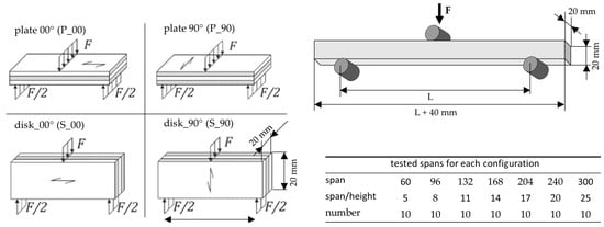 - P-00°: Plate loading with the face-layer fibers oriented parallel to the specimen’s longitudinal axis;
