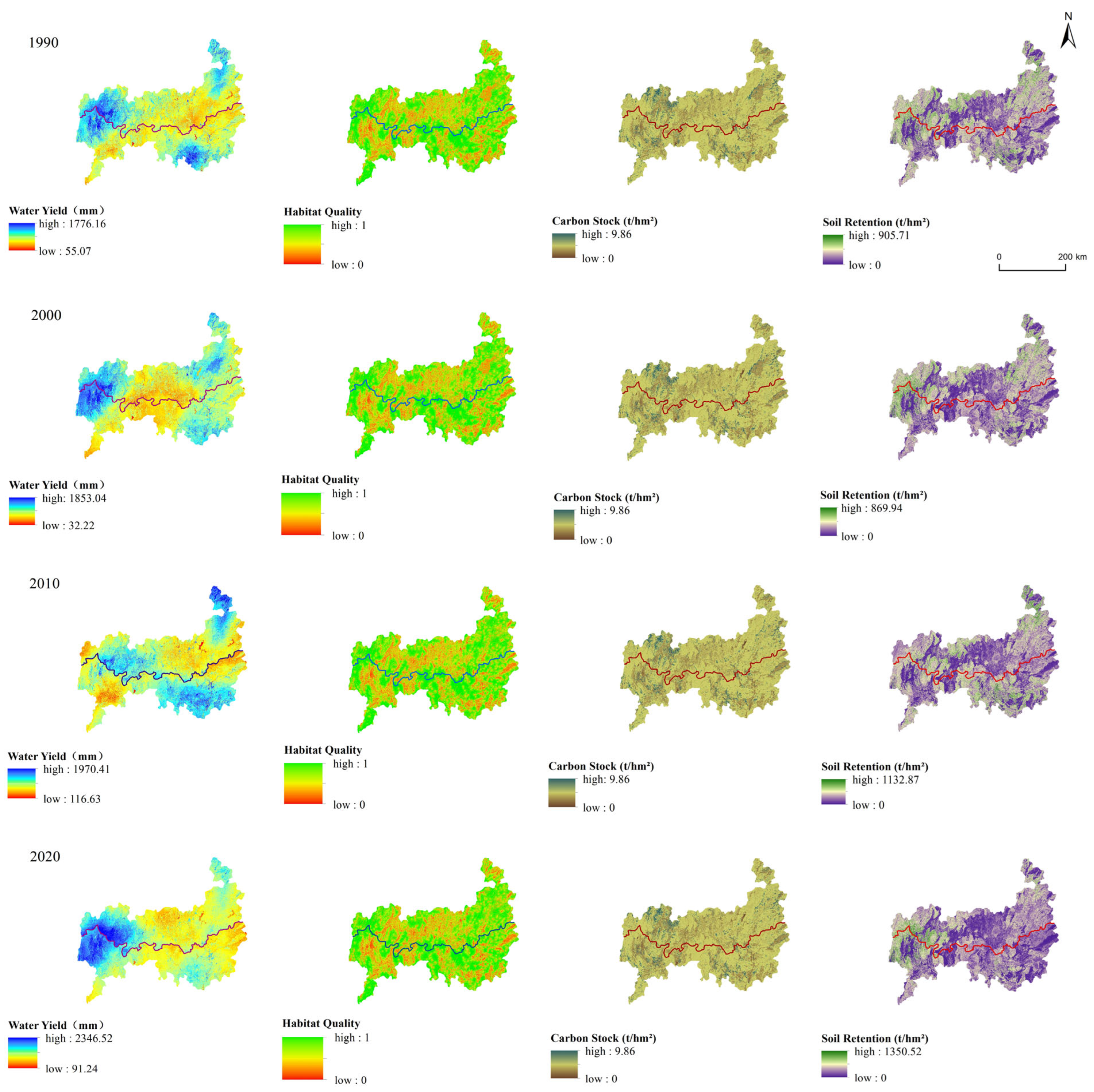 Figure 3. Spatial-Temporal Trends of ESs from 1990 to 2020.