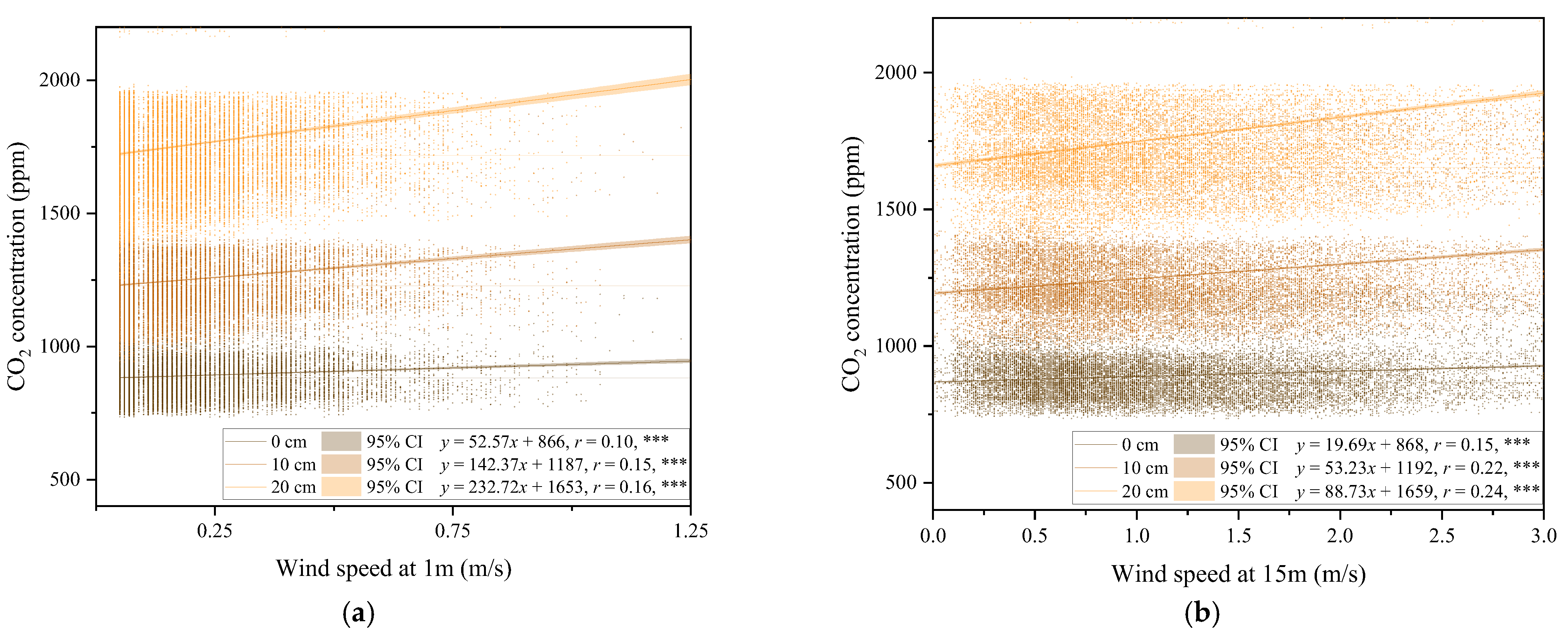 3.3. Response of Soil CO2 Concentration in the Vertical Soil Profile to Wind Speed
