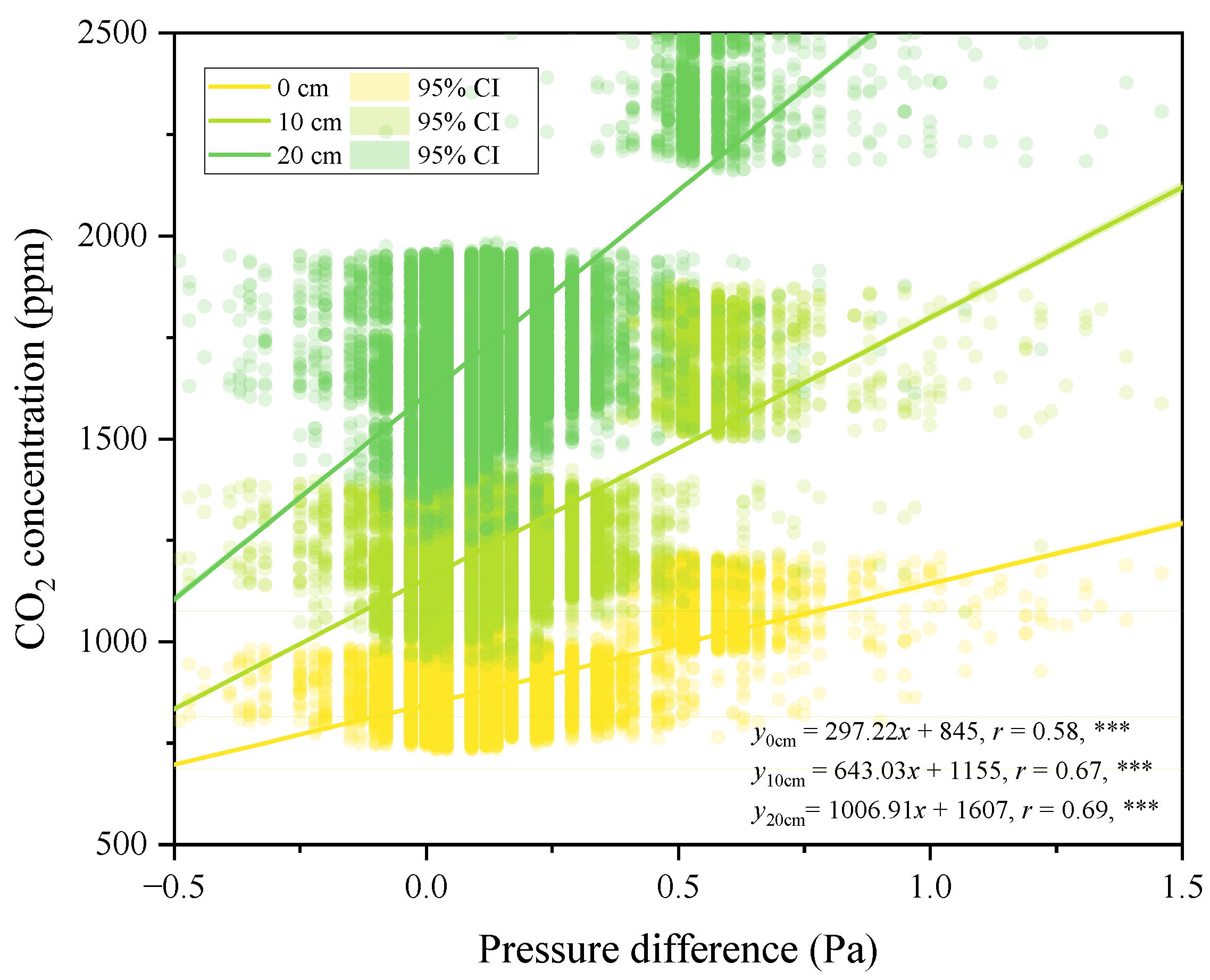 3.5. Response of Soil CO2 Concentration in the Vertical Soil Profile to Soil Pore Air Pressure
