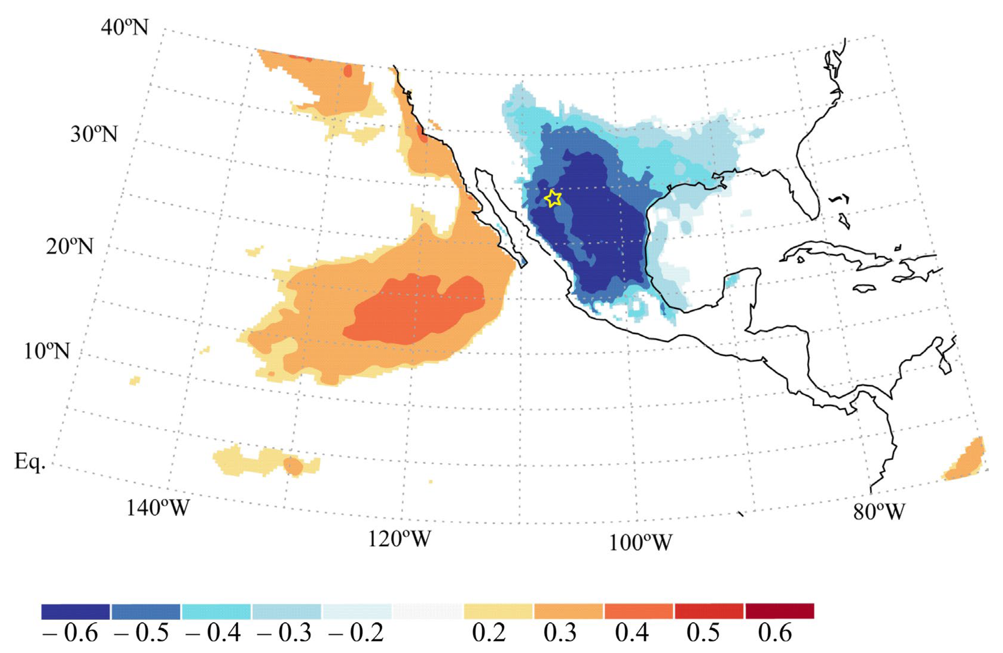 Cervantes-Martínez, R.; Cerano-Paredes, J.; Iniguez, J.M.; Cambrón-Sandoval, V.H.; Esquivel-Arriaga, G.; Villanueva-Díaz, J. Dendrochronological Reconstruction of January–September Precipitation Variability (1647–2015A.D) Using Pinus arizonica in Southwestern Chihuahua, Mexico. Forests 2025, 16, 1639. https://doi.org/10.3390/f16111639