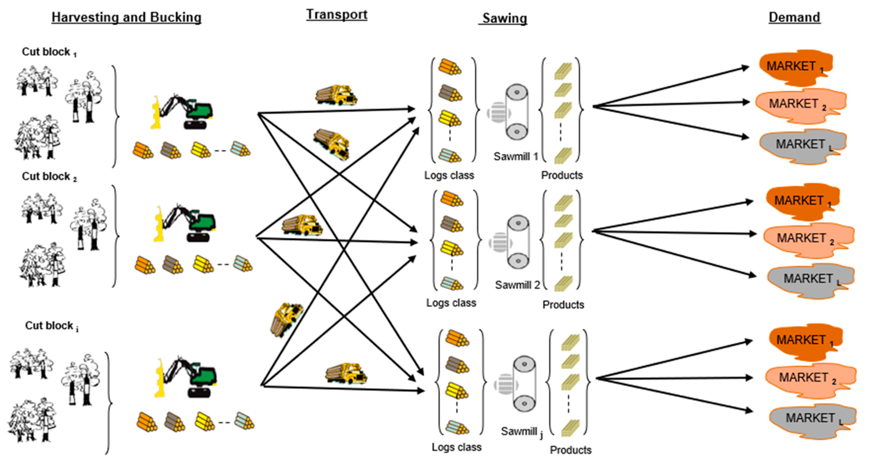 2.2. Forest-to-Lumber Supply Chain