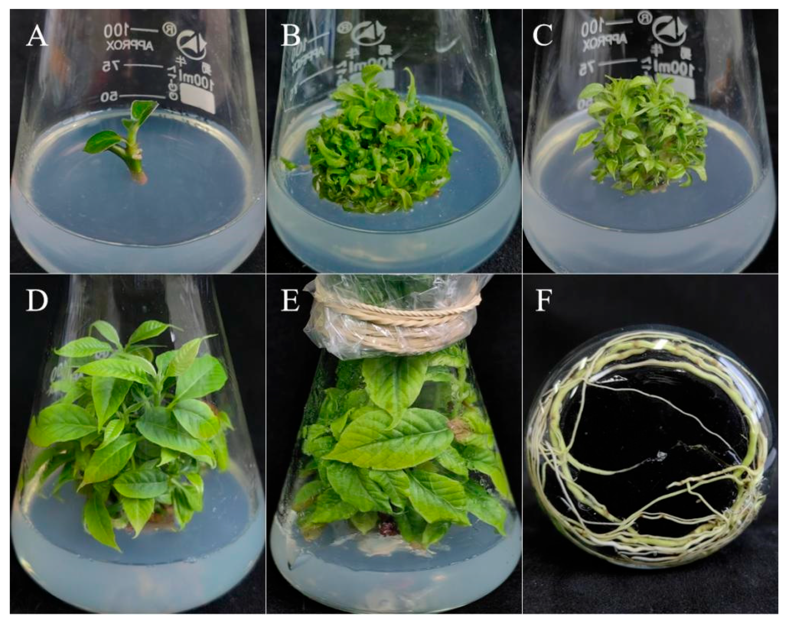 2.3.3. Elongation of Camptotheca acuminata Adventitious Shoots