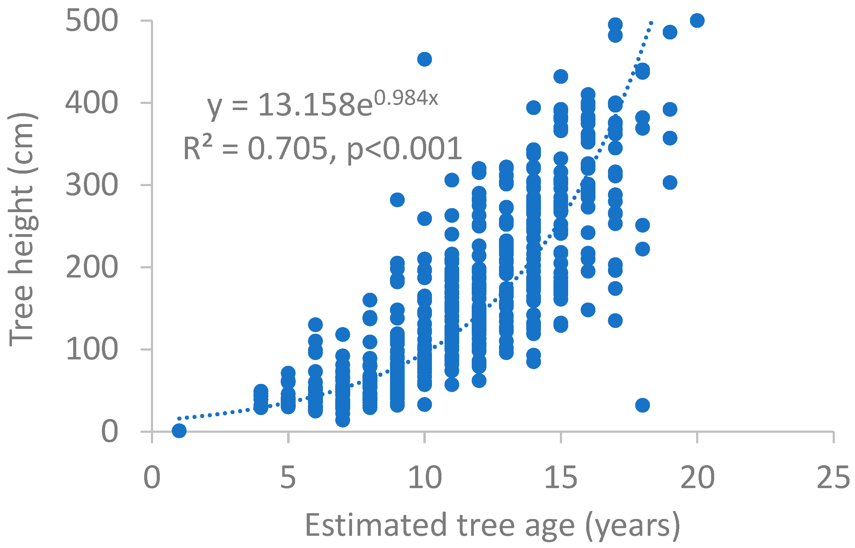 | Populus tremula cover % | 0.4 ± 1.3 | 7.8 ± 8.9 | 0.048 |