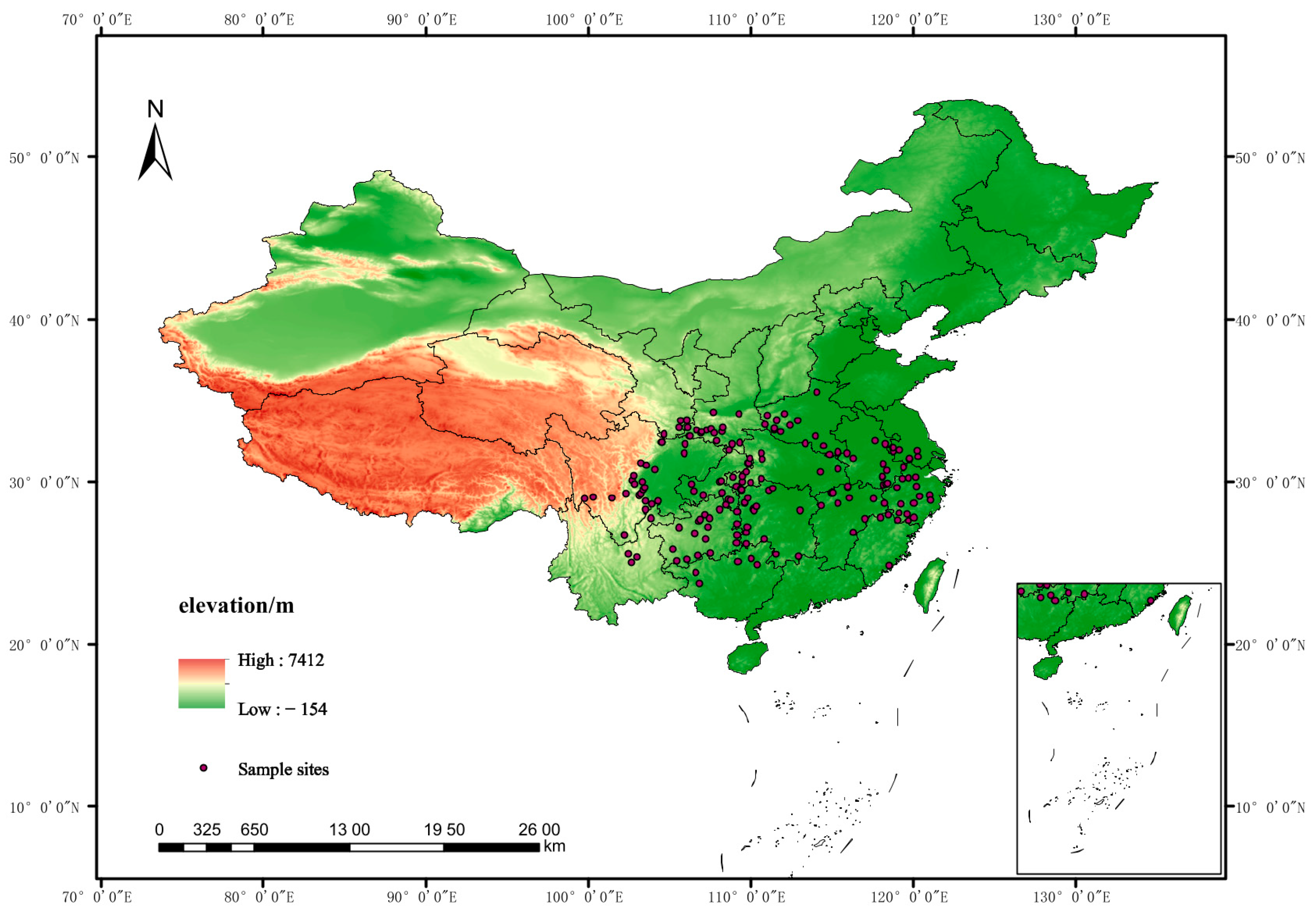 Geographic distribution of the occurrence records for Populus adenopoda. The 181 final occurrence points were obtained from the Global Biodiversity Information Facility (GBIF) and georeferenced specimens from our laboratory collection, which were cleaned and deduplicated.