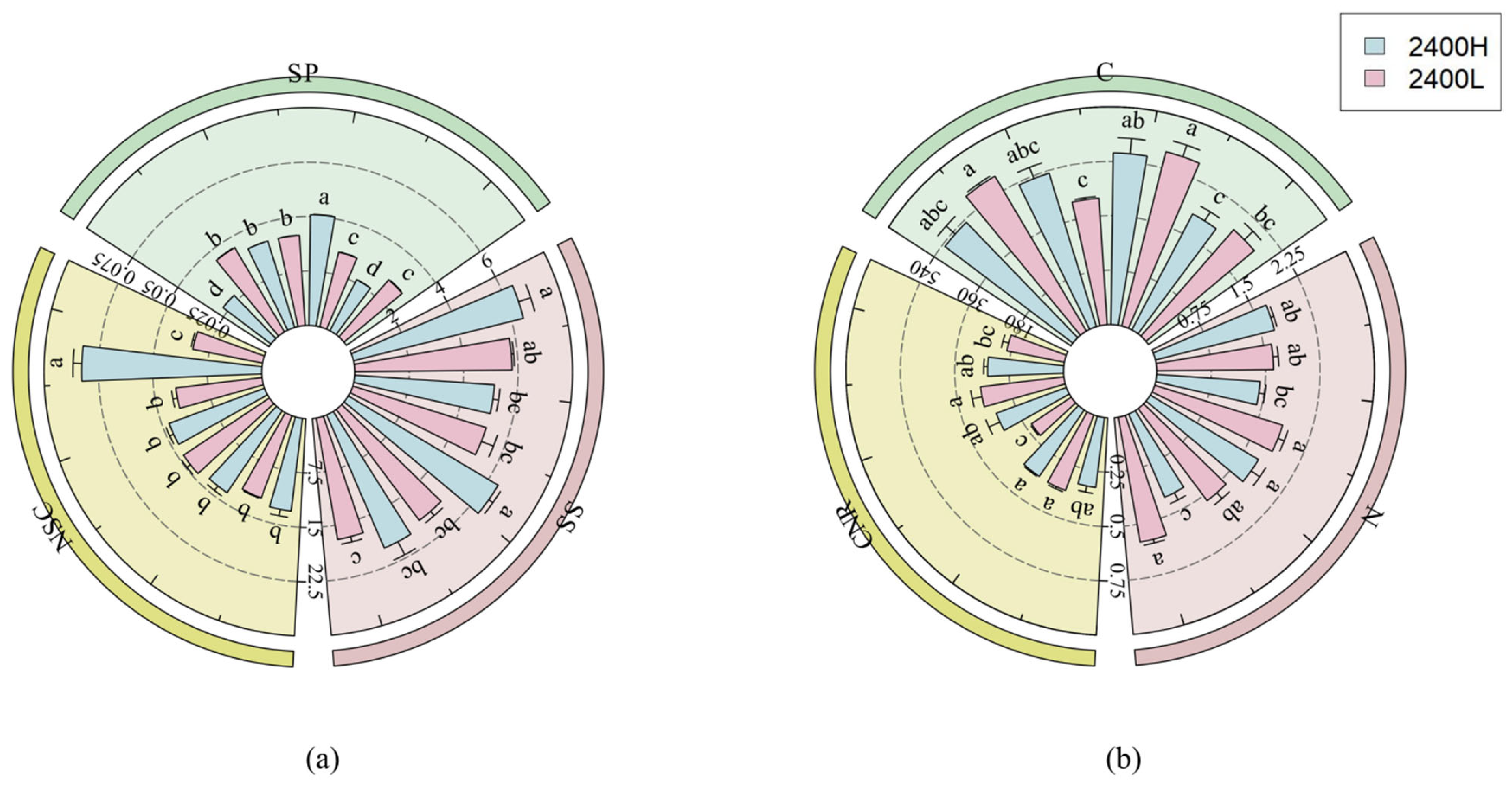 3.3. Pathway Differences Among Functional Traits of Larix principis-rupprechtii at Different Elevational Gradients