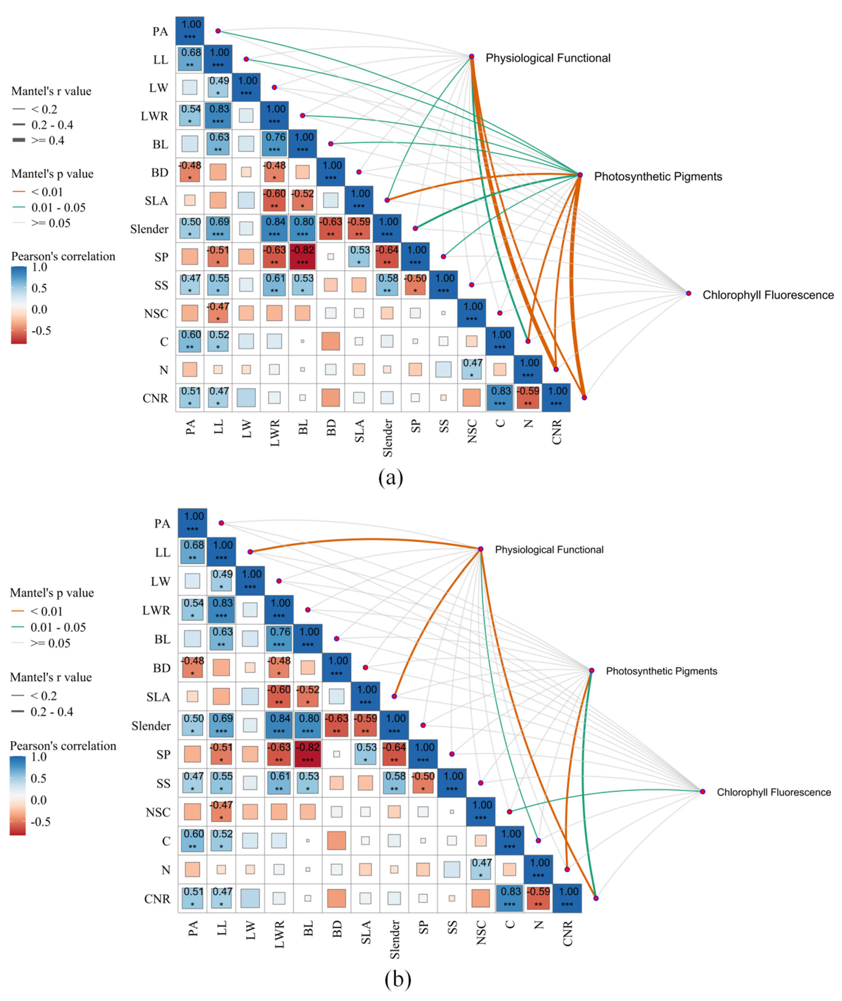 4.2. Correlations Among Leaf Functional Traits of Larix principis-rupprechtii Seedlings Across Elevational Gradients