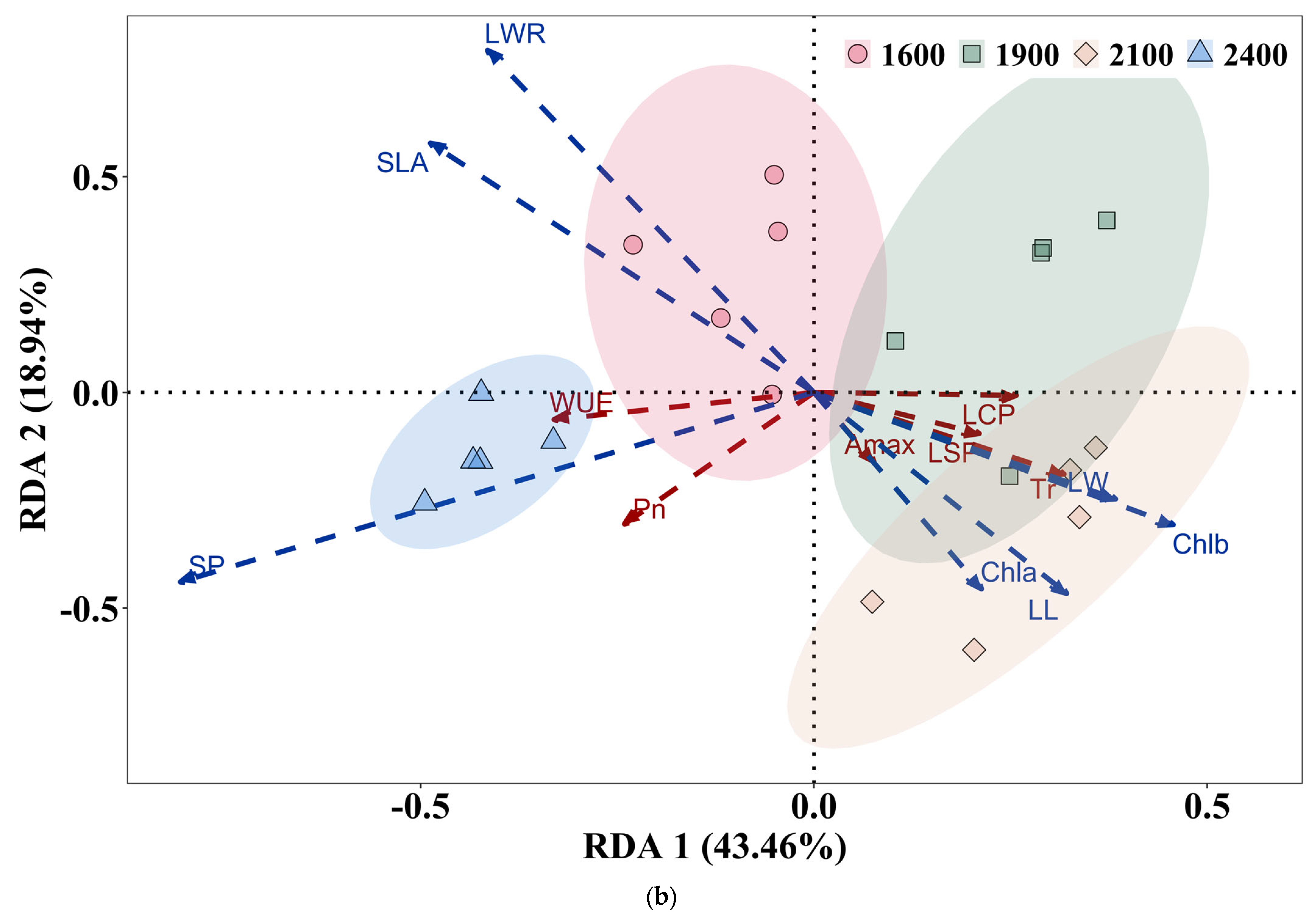 4.3. Pathway Differences in Which Leaf Traits Affect Physiological Traits Across Elevational Gradients