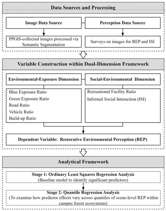 Yin, J.; Jia, R.; Peng, L. Socio-Ecological Dimensions Linking Campus Forest Ecosystems and Students’ Restorative Perception: Quantile Regression Evidence from Street-Level PPGIS. Forests 2025, 16, 1668. https://doi.org/10.3390/f16111668