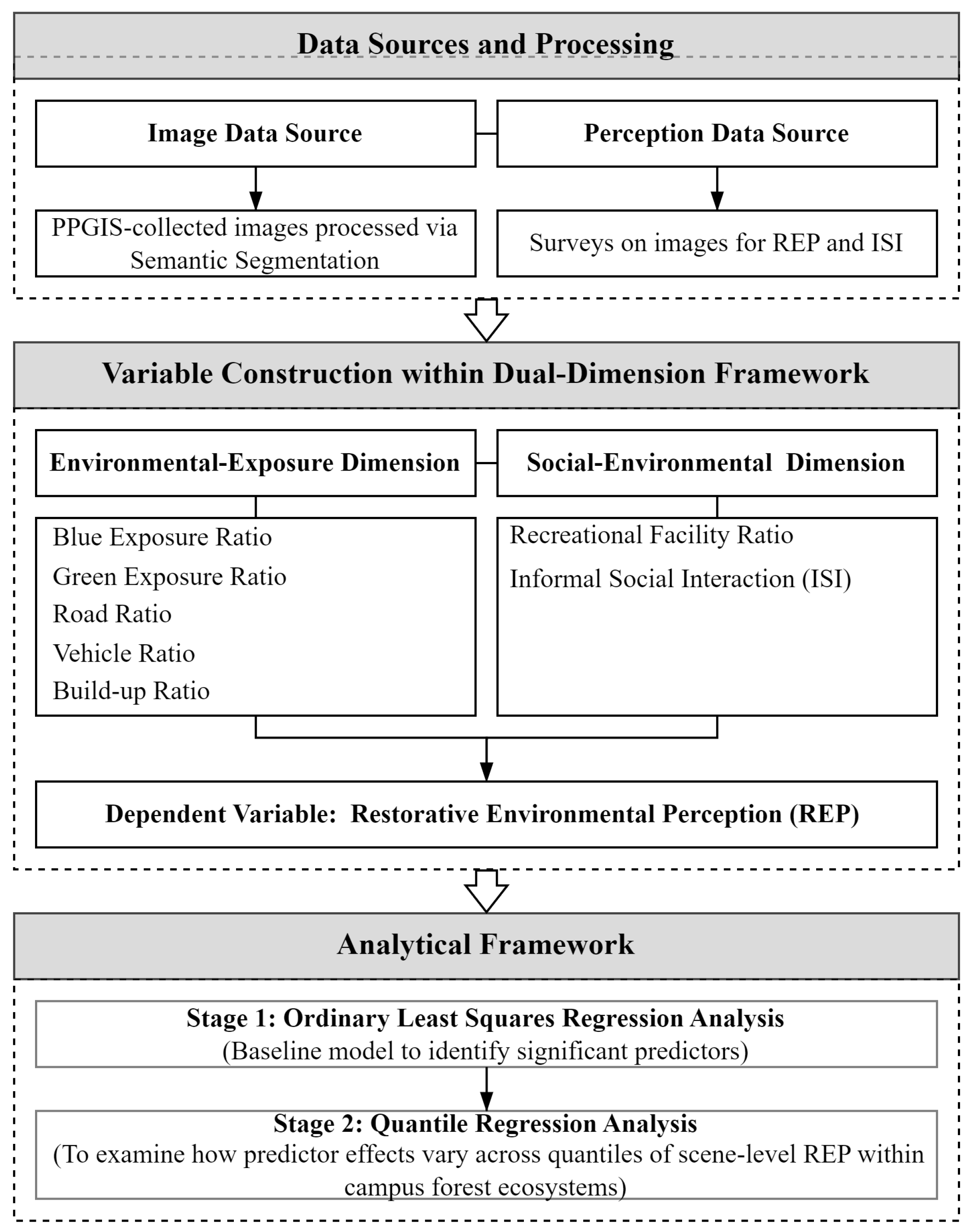 APA StyleYin, J., Jia, R., & Peng, L. (2025). Socio-Ecological Dimensions Linking Campus Forest Ecosystems and Students’ Restorative Perception: Quantile Regression Evidence from Street-Level PPGIS. Forests, 16(11), 1668. https://doi.org/10.3390/f16111668
