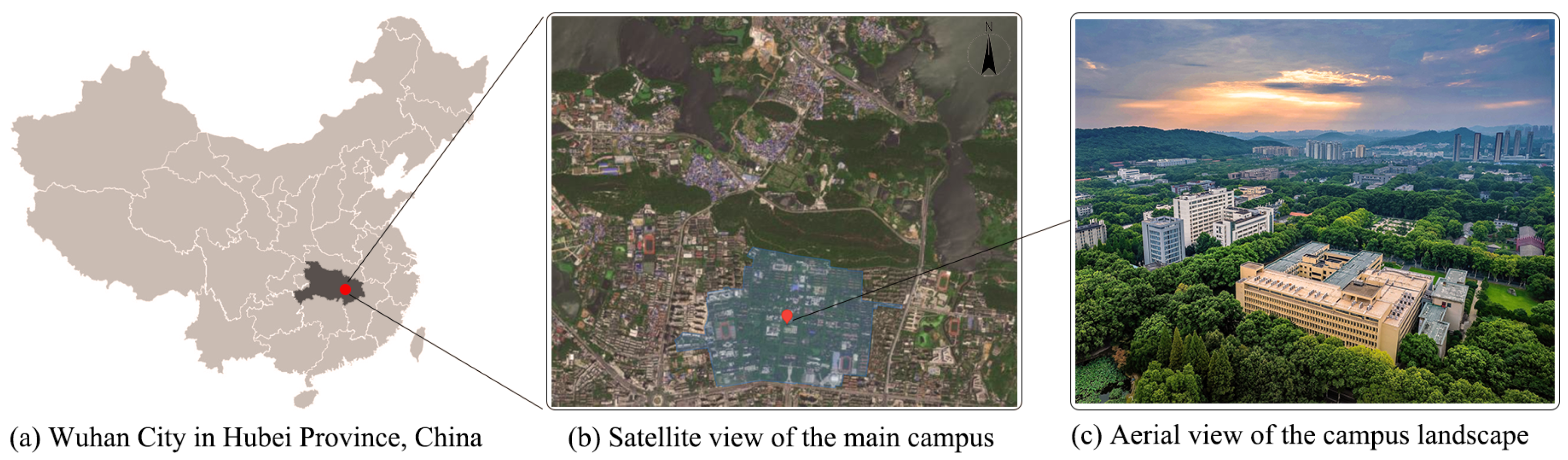 - Nie, X.; Wang, Y.; Zhang, C.; Zhao, Y.; Kirkwood, N. The Varied Restorative Values of Campus Landscapes to Students’ Well-Being: Evidence from a Chinese University. BMC Public Health 2024, 24, 487. [Google Scholar] [CrossRef]