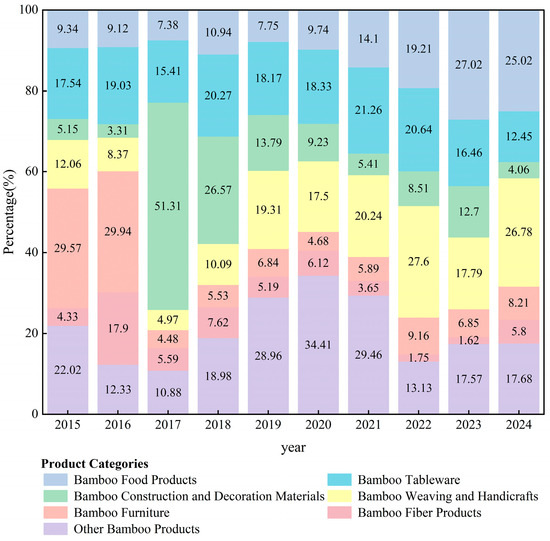 Export Proportion of Various Bamboo Products from 2015 to 2024.