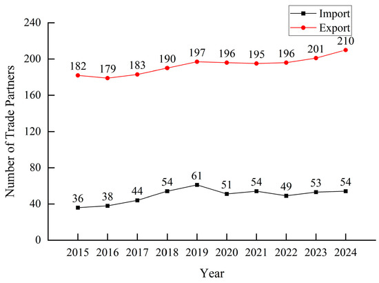 Number of Import and Export Trade Partners from 2015 to 2024.