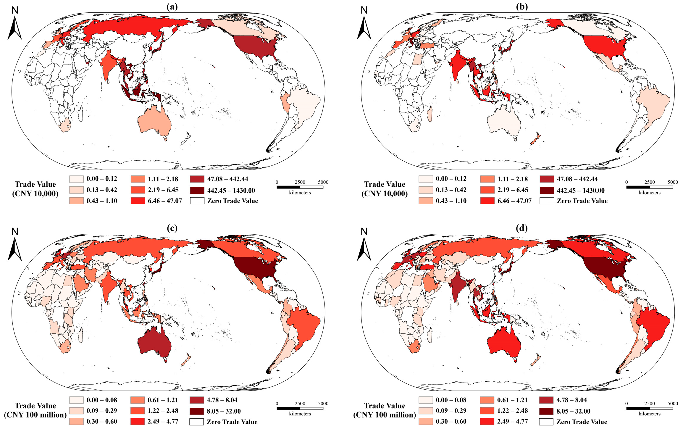 - Huang, X.; Wang, Z.; Pang, Y.; Tian, W.; Zhang, M. Static resilience evolution of the global wood forest products trade network: A complex directed weighted network analysis. Forests 2024, 15, 1665. [Google Scholar] [CrossRef]