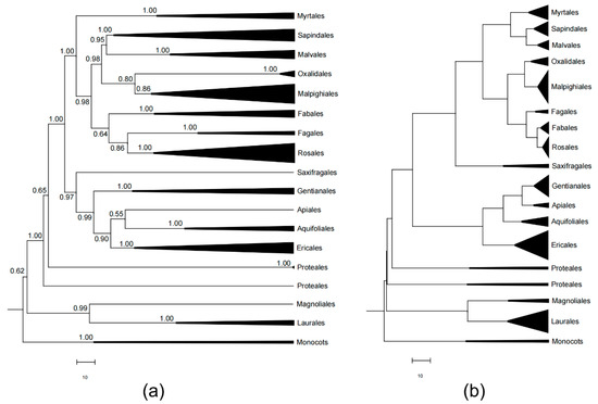- Wikstrom, N.; Savolainen, V.; Chase, M.W. Evolution of the angiosperms: Calibrating the family tree. Proc. Biol. Sci. 2001, 268, 2211–2220. [Google Scholar] [CrossRef] [PubMed]