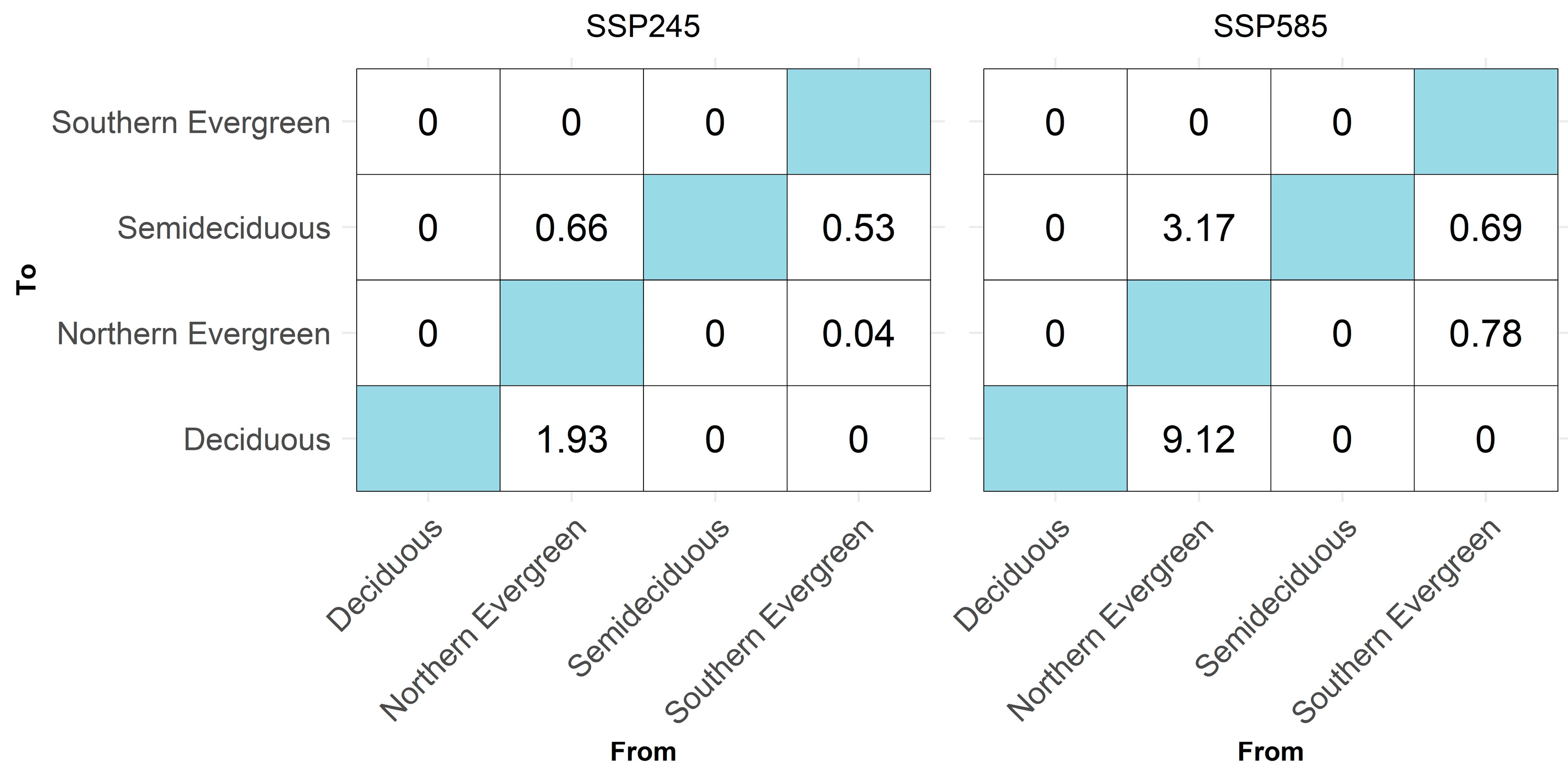 | Semideciduous | +4.37 | +0.46 | +4.83 | +3.22 | +3.41 | +6.63 |