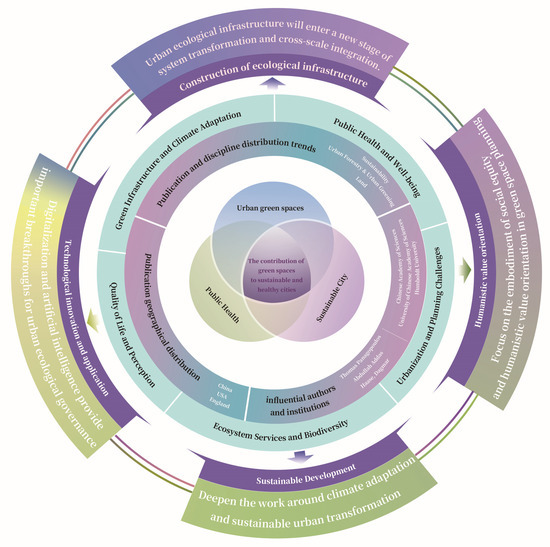 Overall, research on urban green space and sustainable healthy cities demonstrates not only a multidisciplinary synergy led by environmental sciences but also the construction of a systematic and intersecting knowledge framework across spatial planning, ecological functions, public health, and engineering technologies. This integrative research pattern suggests that the field will continue to expand its boundaries between theoretical advancement and practical application, providing a solid scientific foundation for urban sustainable transformation and the enhancement of human well-being.