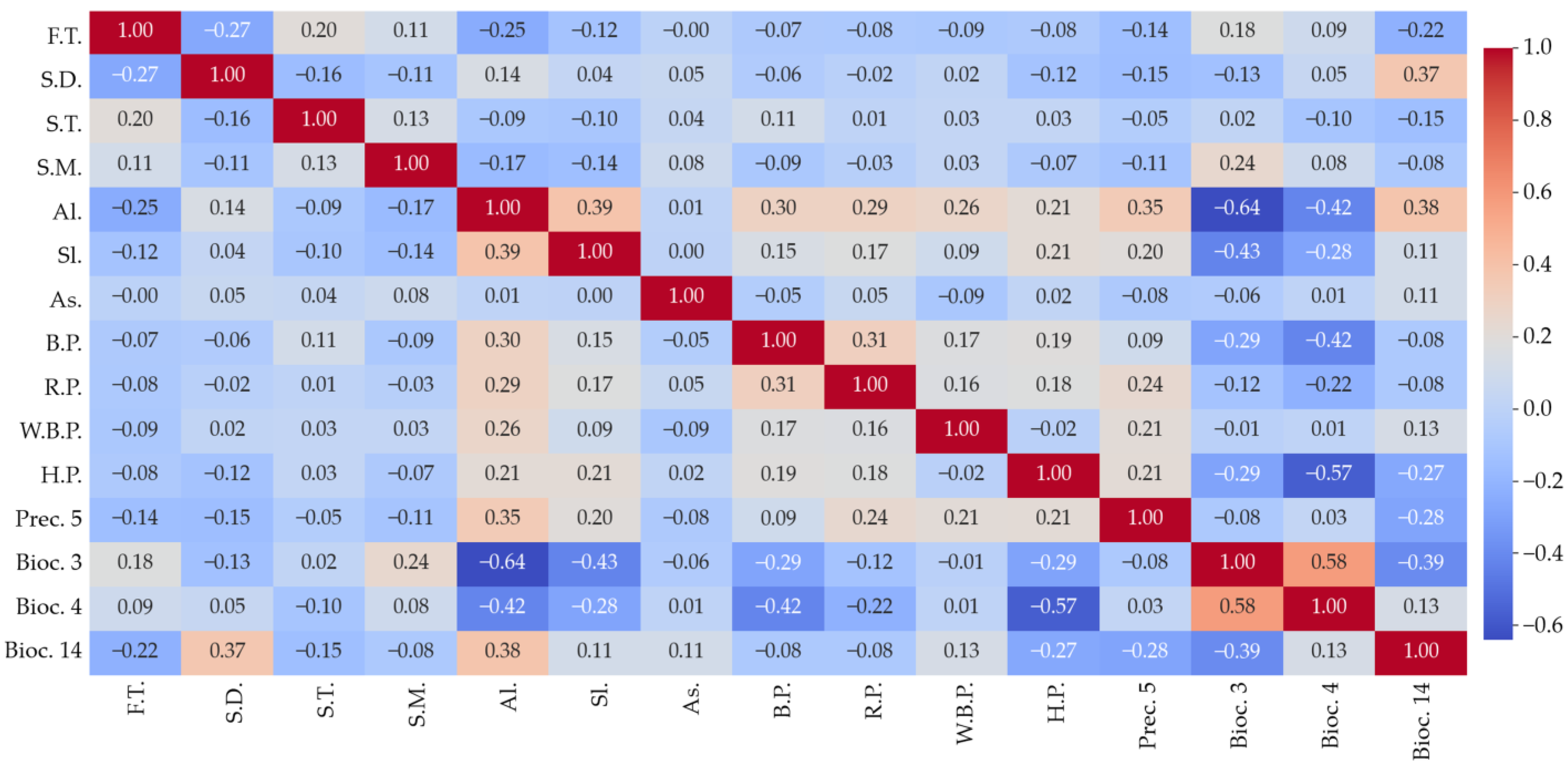 - Chen, L.; Lu, W.; Lamont, B.B.; Liu, Y.; Wei, P.; Xue, W.; Xiong, Z.; Tang, L.; Wang, Y.; Wang, P. Modeling the distribution of pine wilt disease in China using the ensemble models MaxEnt and CLIMEX. Ecol. Evol. 2024, 14, e70277. [Google Scholar] [CrossRef]