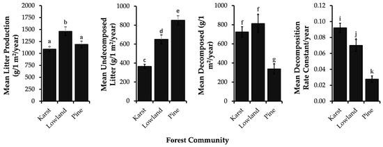 3.1. Litterfall and In Situ Decomposition Rate Among the Forest Communities