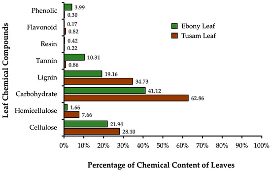 2.5. Chemical Analysis of Tusam and Ebony Leaves