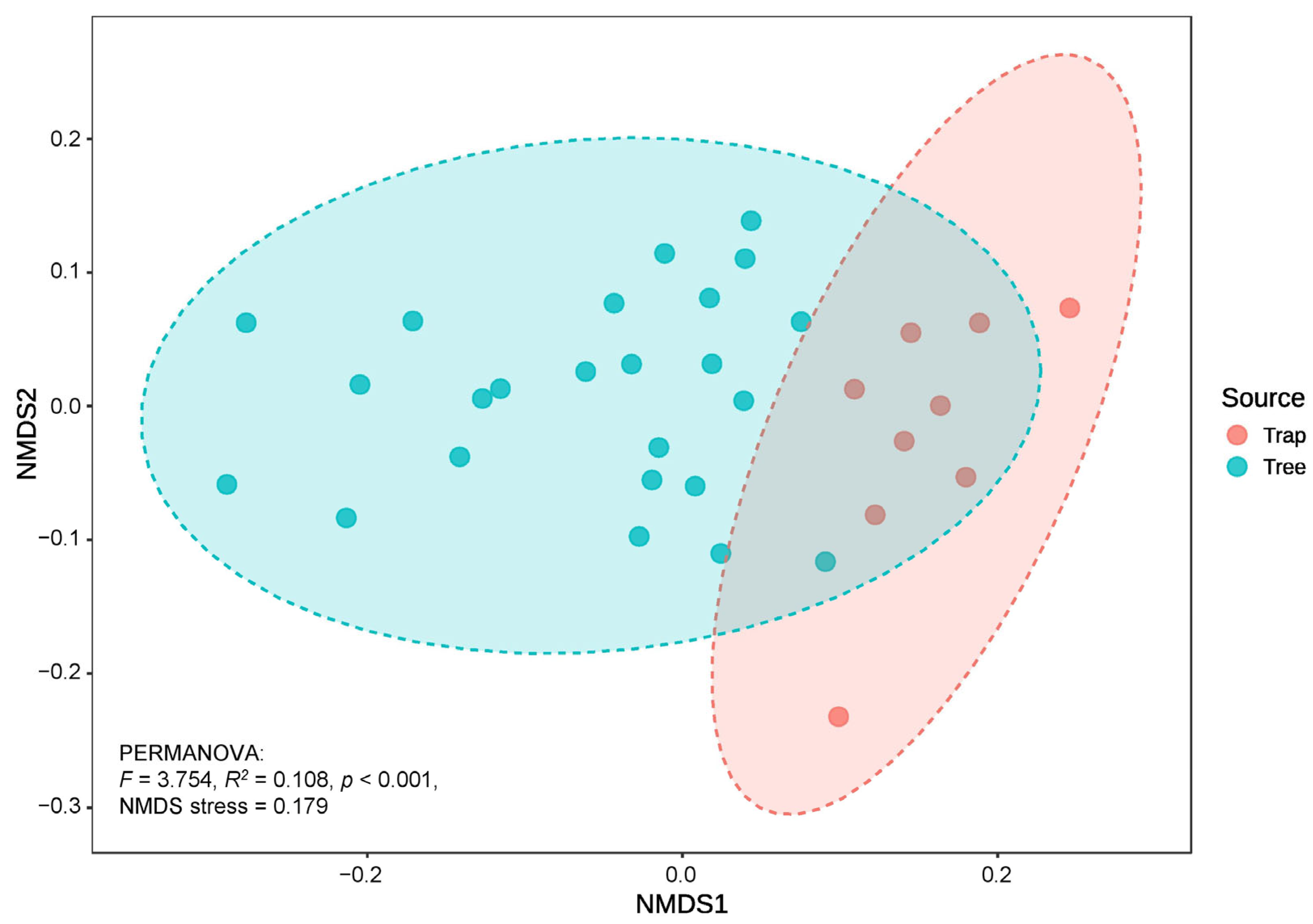 3.4. Impact of Bark Beetles Collection Method on Fungal Communities