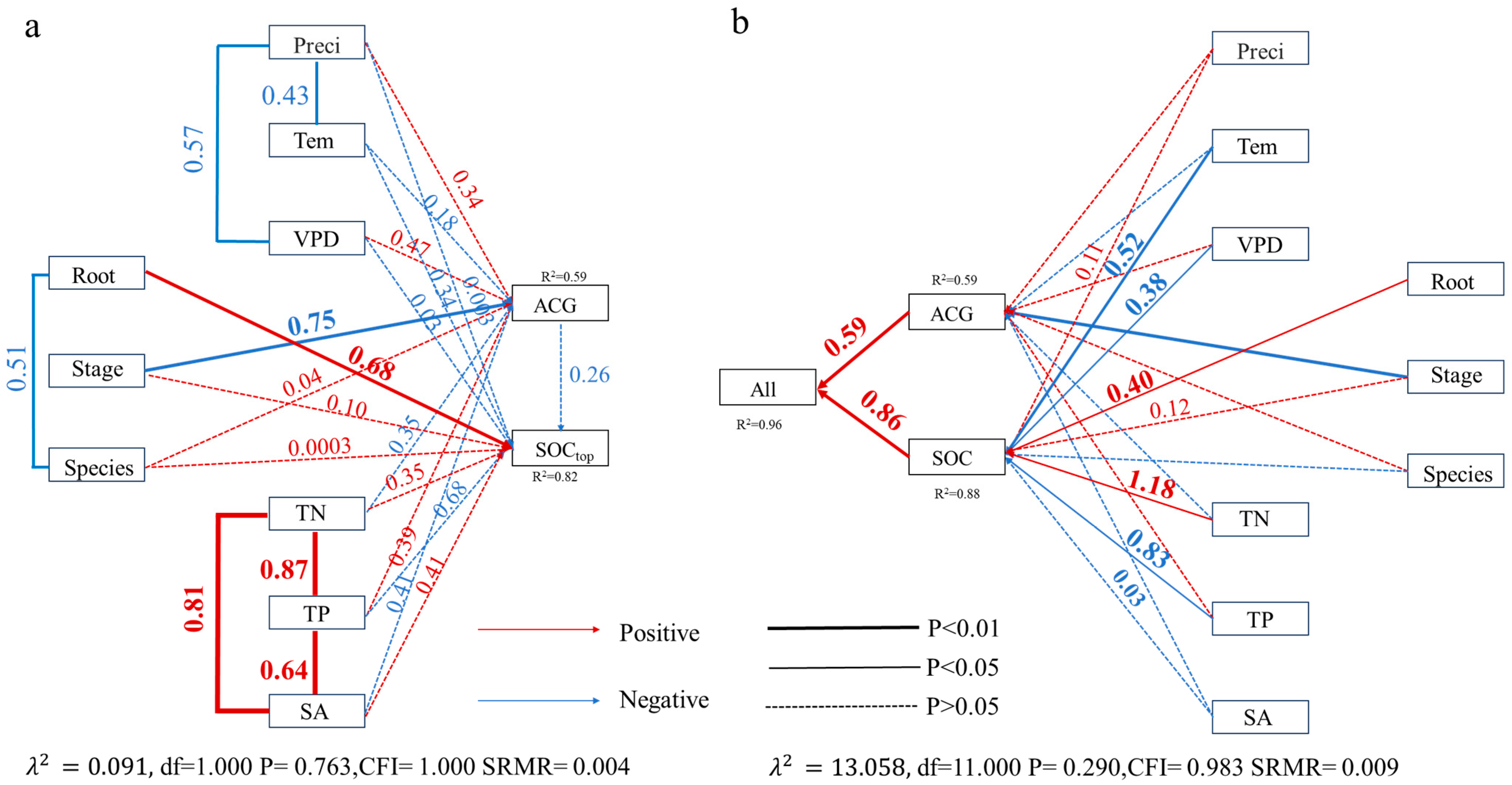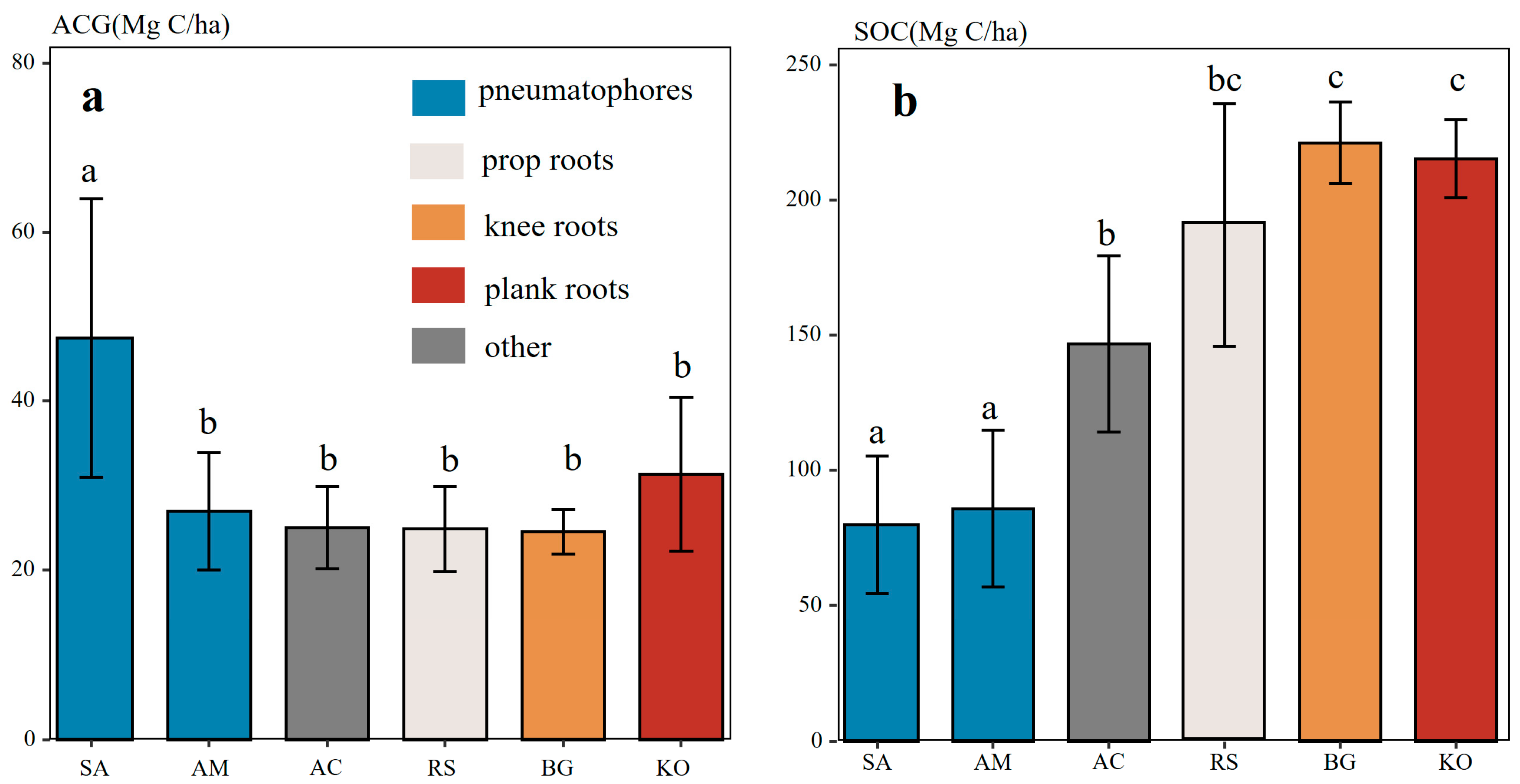 - Species-level differences play a dominant role in determining ACG and root structure, whereas soil environmental factors are the primary drivers of SOC dynamics