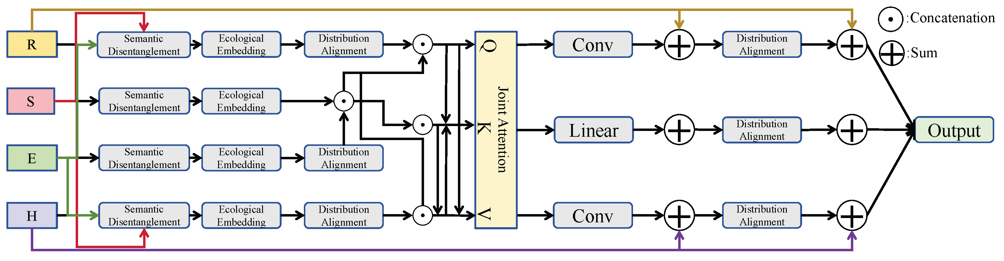 Peng, J.; Fu, Z.; Zhou, H.; Liu, Y.; Zhang, Y.; Shi, R.; Li, J.; Dong, M. Integrating Ecological Semantic Encoding and Distribution-Aligned Loss for Multimodal Forest Ecosystem. Forests 2025, 16, 1697. https://doi.org/10.3390/f16111697