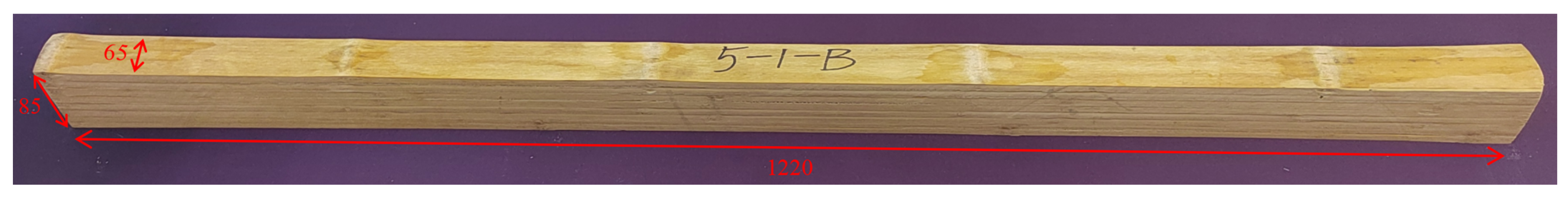 - Huang, B.; Chen, L.; Wang, X.; Ma, X.; Liu, H.; Zhang, X.; Sun, F.; Fei, B.; Fang, C. Eco-friendly, high-utilization, and easy-manufacturing bamboo units for engineered bamboo products Processing and mechanical characterization. Compos. Part B Eng. 2023, 267, 111073. [Google Scholar] [CrossRef]