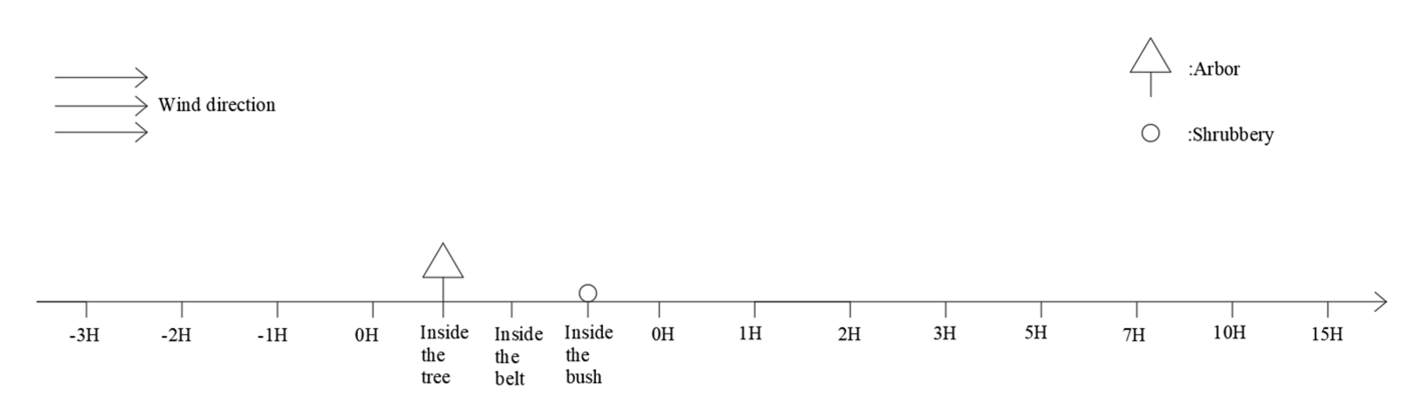 - Zhang, S.; Yuan, W.; Yu, Y.; Zhang, Y.; Wang, W.; Wang, L.; Yang, Y.; Wang, H. Shrubs plays an important role in configuration of shelterbelt in windy and sandy areas. Front. Ecol. Evol. 2024, 12, 1347714. [Google Scholar] [CrossRef]