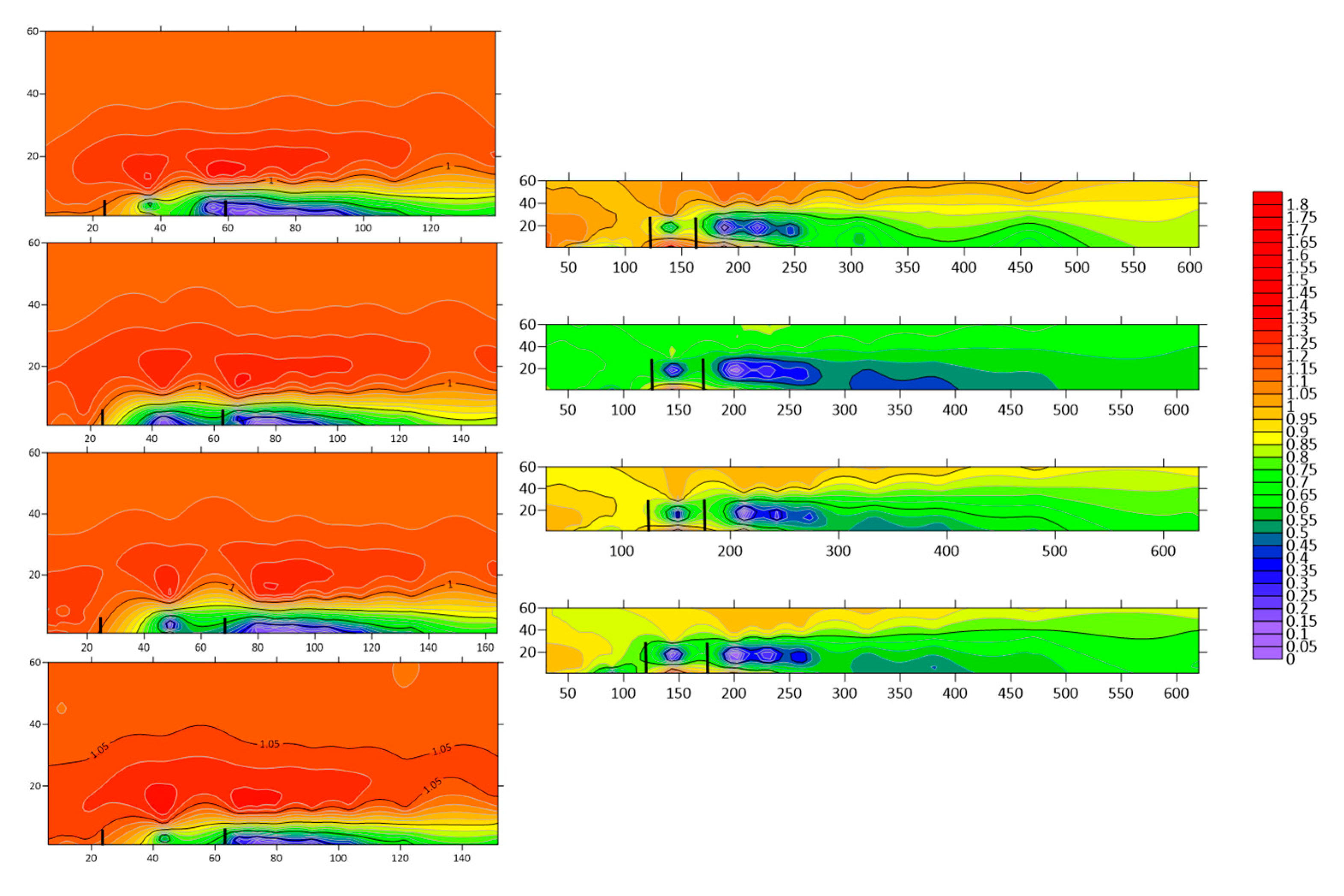 3.3.3. Windbreak Efficiency Analysis at 15 m s−1