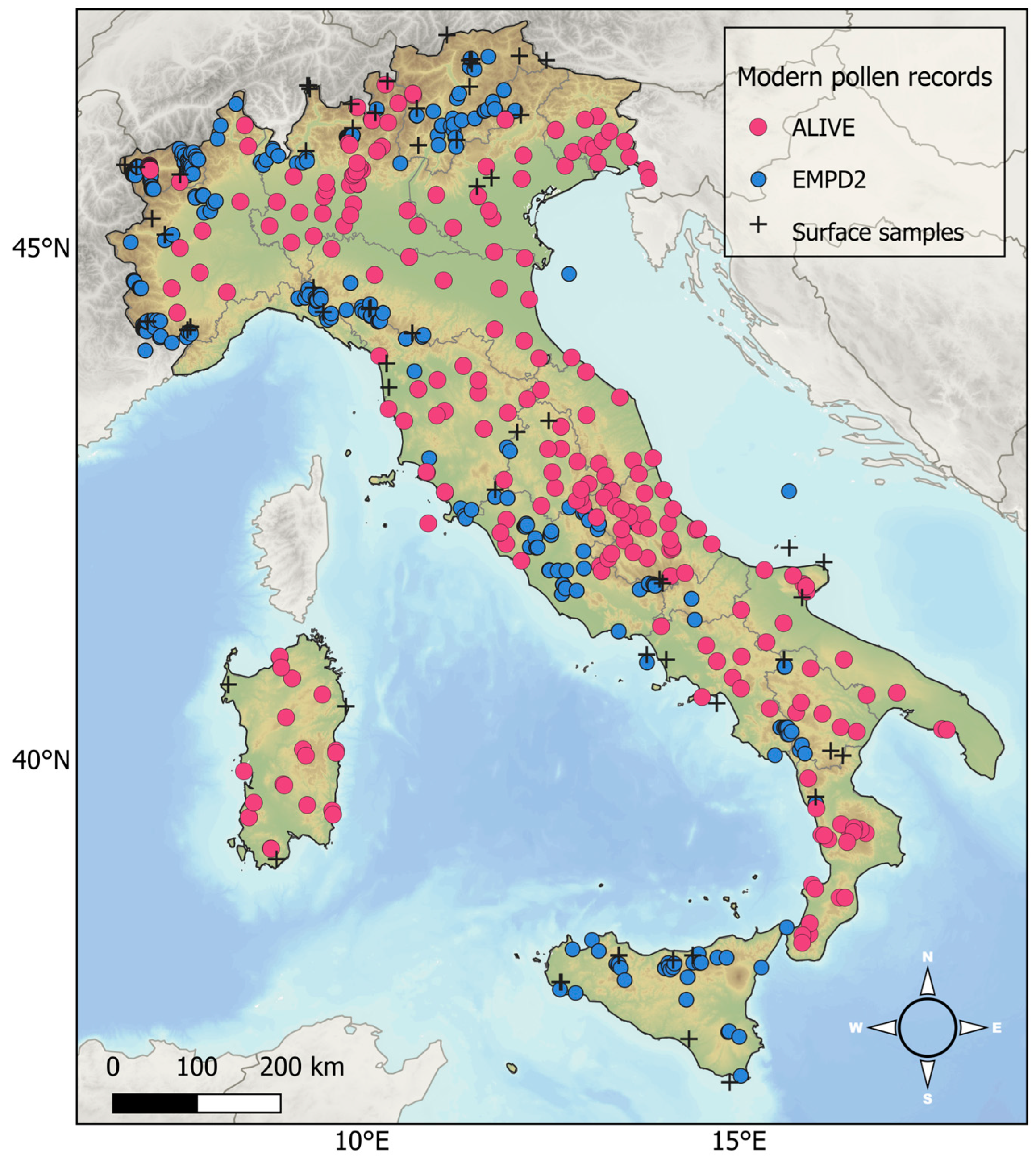 - Describe the main results of the ALIVE Project and introduce a new database of modern pollen deposition and data on forest tree species across Italy (Section 5). These data, collected from a wide range of ecological and biogeographical settings, are intended to support pollen-vegetation calibration studies and palaeoenvironmental reconstructions. They also represent a significant contribution to the existing body of modern palynological data at both national and European scale.