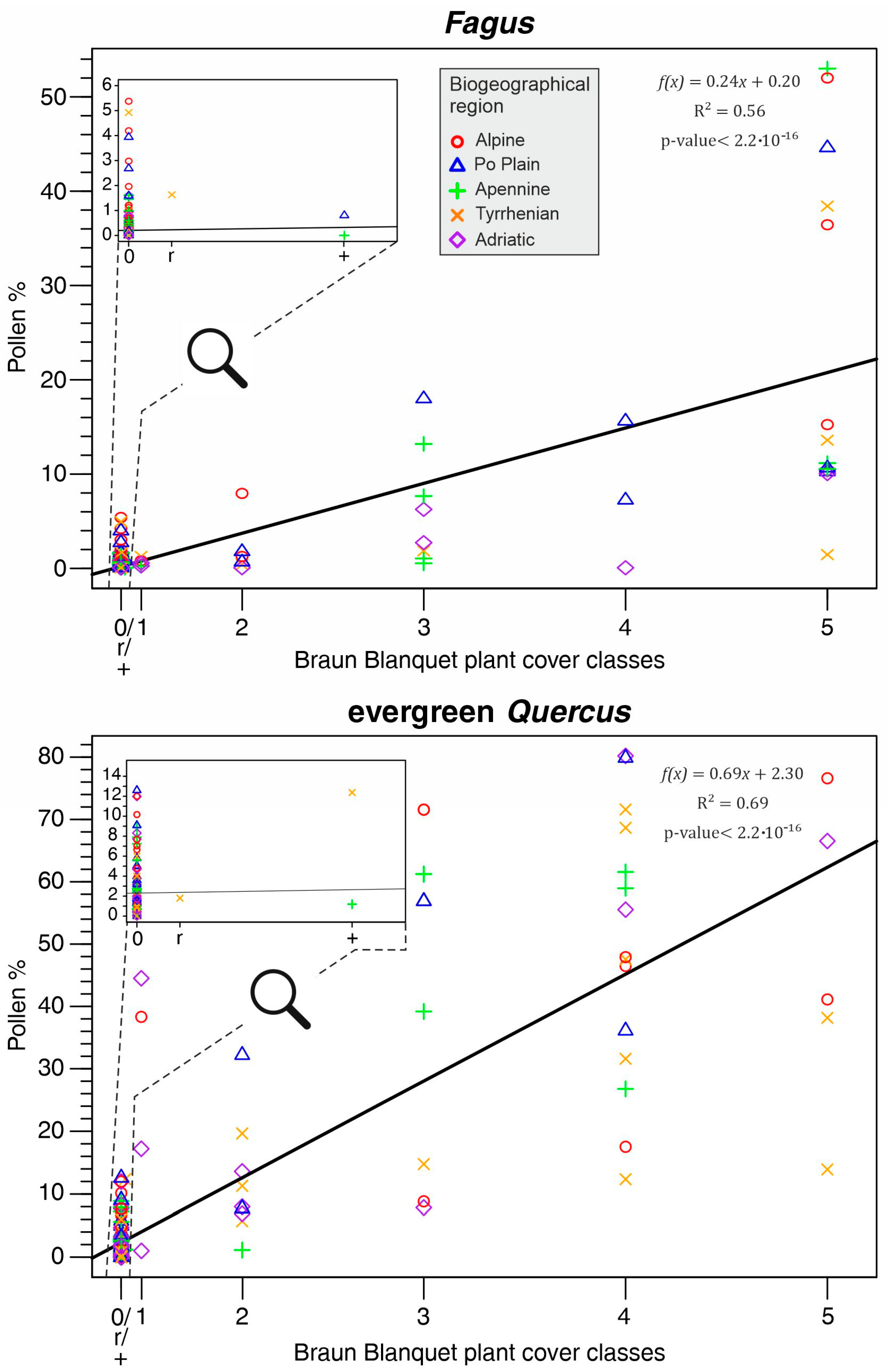 - Improving the statistical comparison between pollen and vegetation data through a more precise recording of plant cover, since Braun-Blanquet classes involve a degree of uncertainty, whereas pollen data are expressed as exact percentage values.