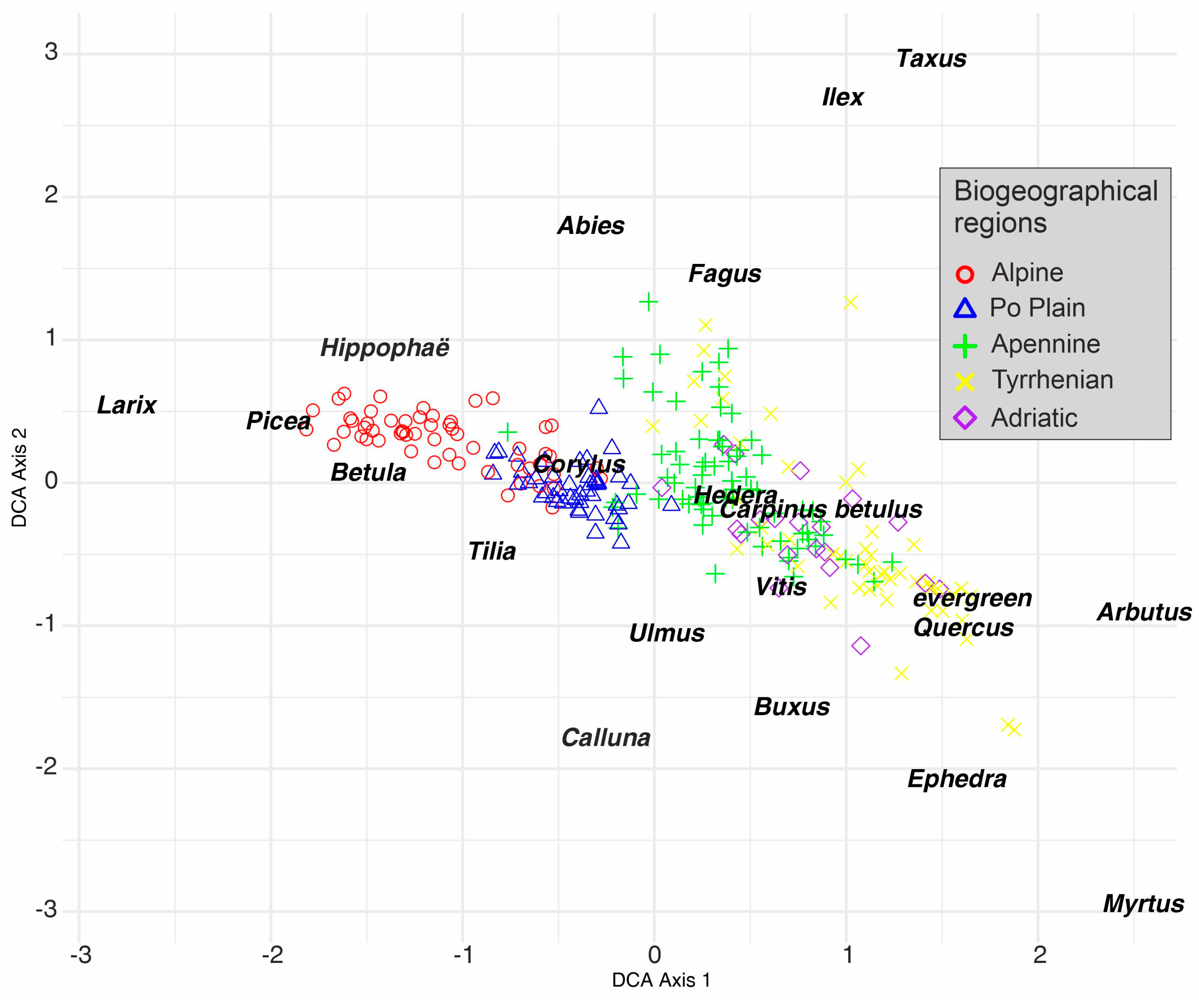 - A survey of available pollen records from the last six millennia for the Italian Peninsula, to define the rates, patterns, timing, and modes of range shifts in the target taxa across the country;
