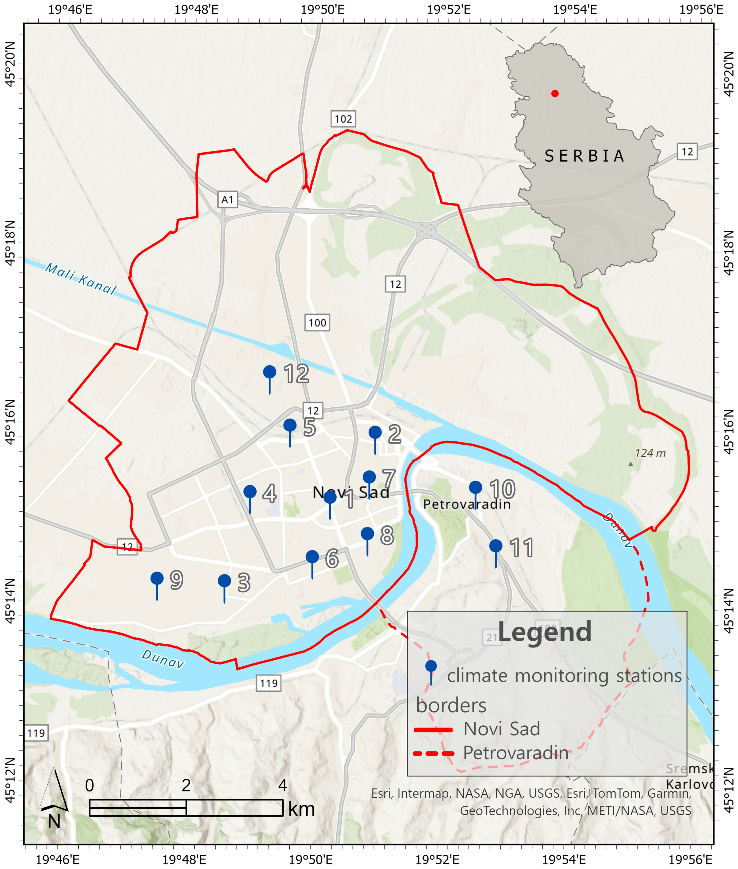 - Savić, S.; Šećerov, I.; Dunjic, J.; Milošević, D. Hourly Air Temperature Datasets from the City of Novi Sad—NSUNET System. Zenodo 2023. [Google Scholar] [CrossRef]