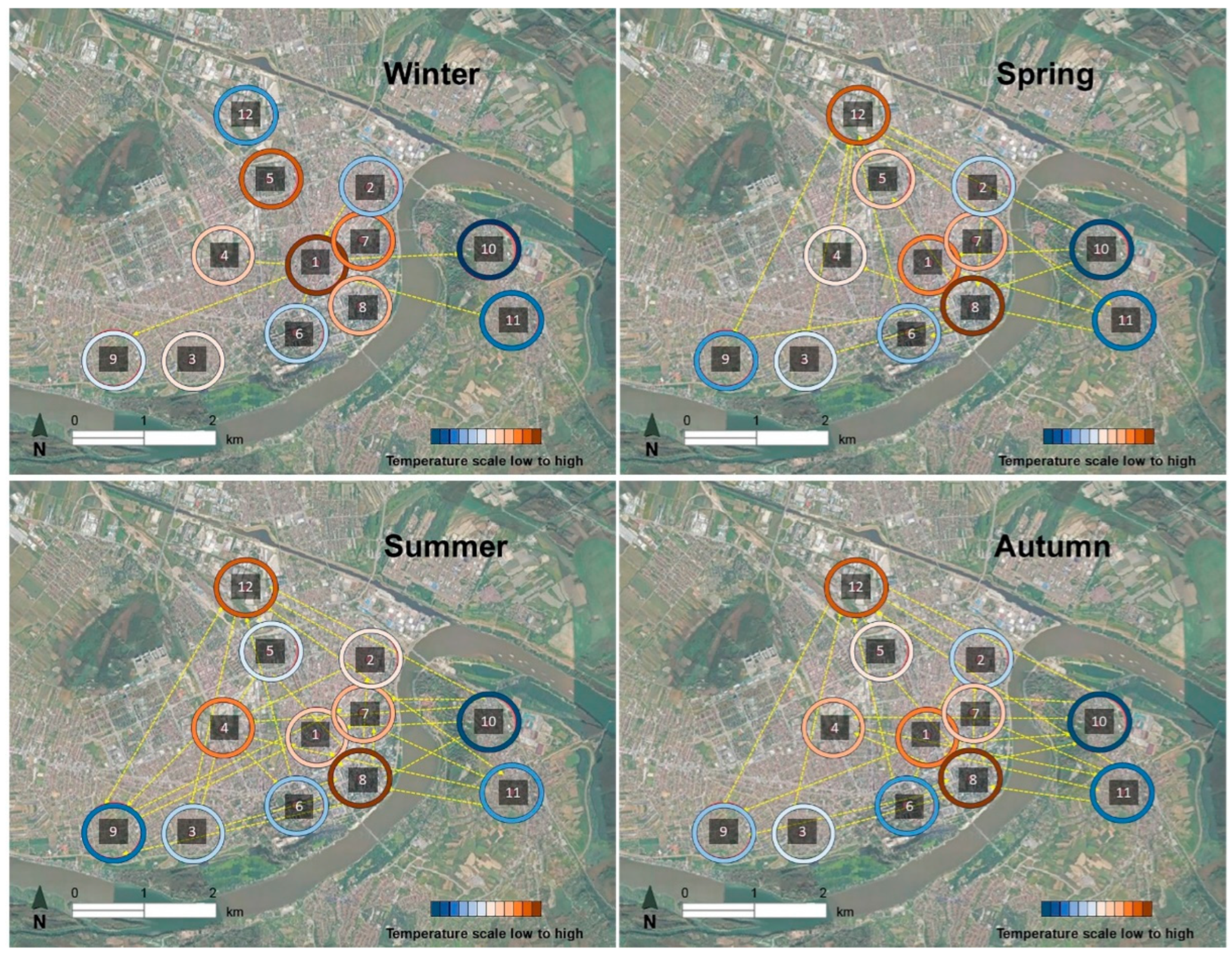| Season | Moran’s Index | Expected Index | Variance | Z-Score | p-Value |