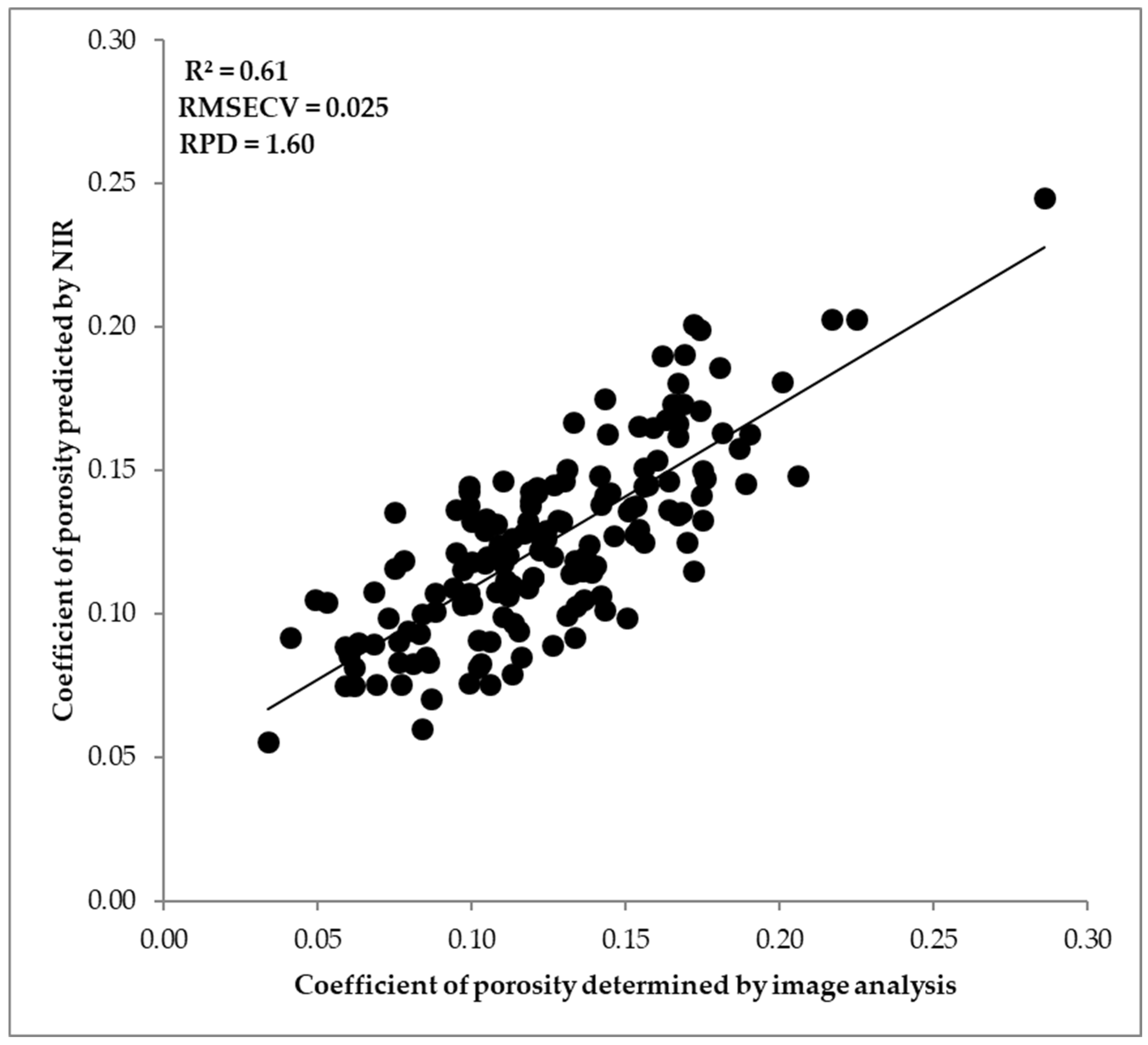 4.2. PLS-R Modeling and Cork Porosity Prediction