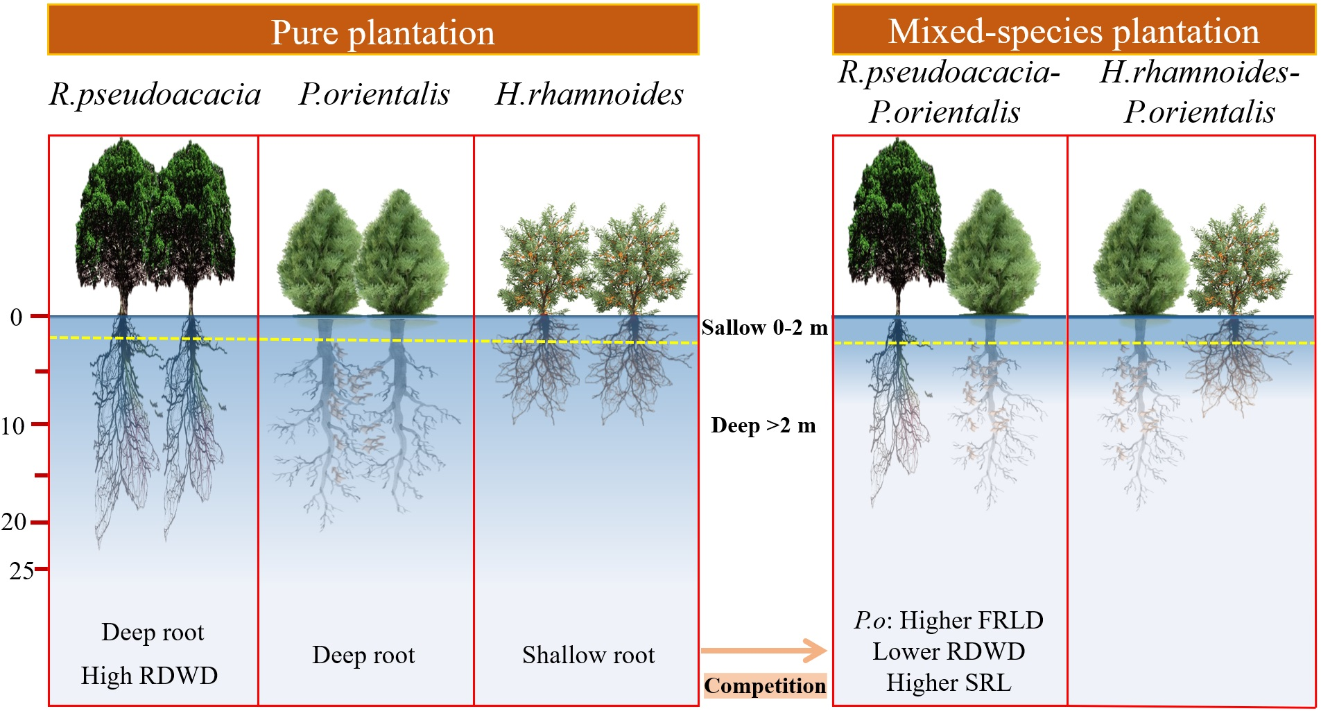 - Dai, J.J.; Li, Y.Y.; Wang, L. Mixed-species plantations alleviate deep soil water depletion and facilitate hydrological niche partitioning compared to pure plantations. For. Ecol. Manag. 2023, 539, 121017. [Google Scholar] [CrossRef]