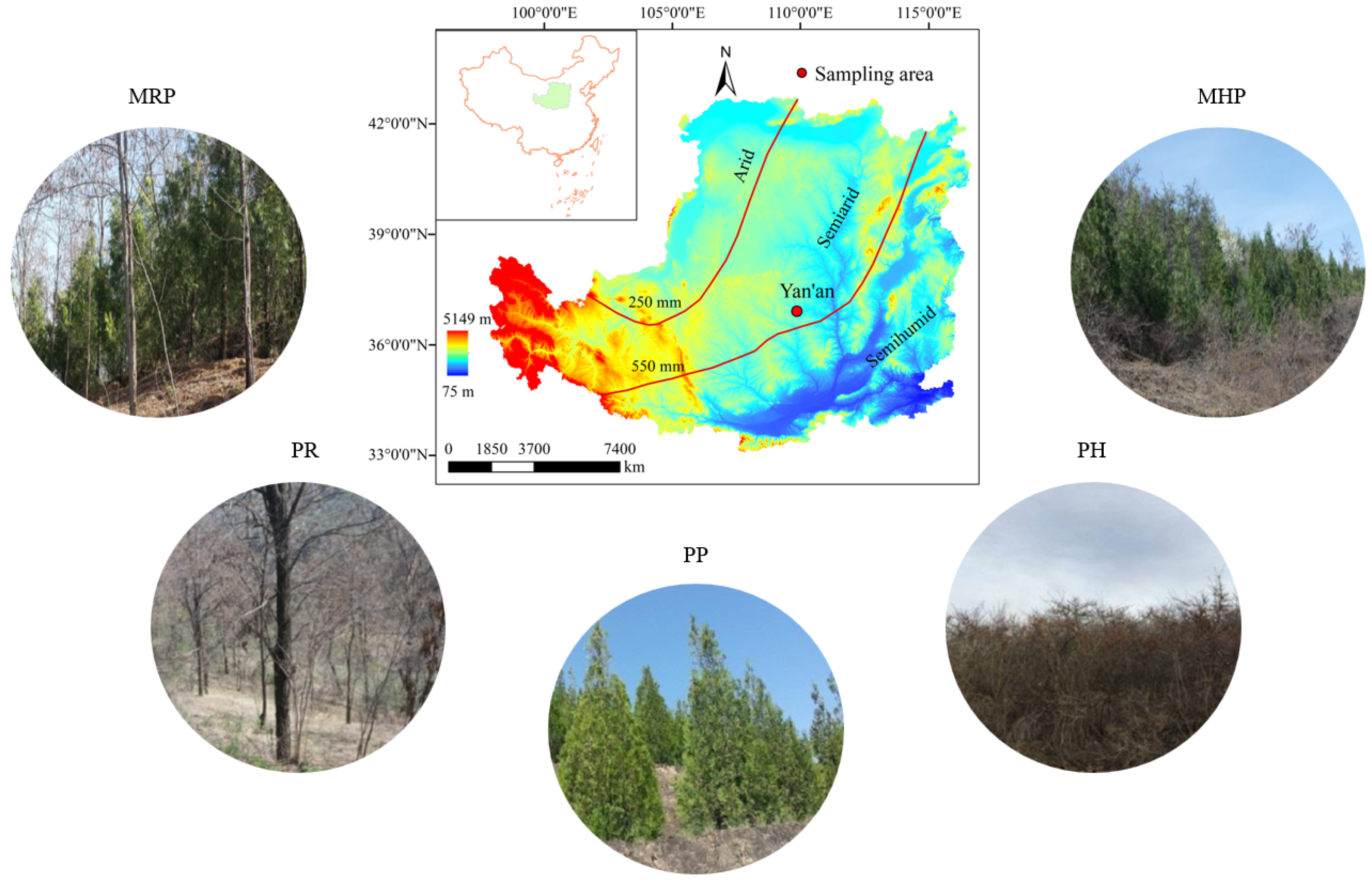 - Chen, X.D.; Tang, M.; Zhang, X.L.; Hamel, C.; Li, W.; Sheng, M. Why does oriental arborvitae grow better when mixed with black locust: Insight on nutrient cycling? Ecol. Evol. 2018, 8, 744–754. [Google Scholar] [CrossRef] [PubMed]
