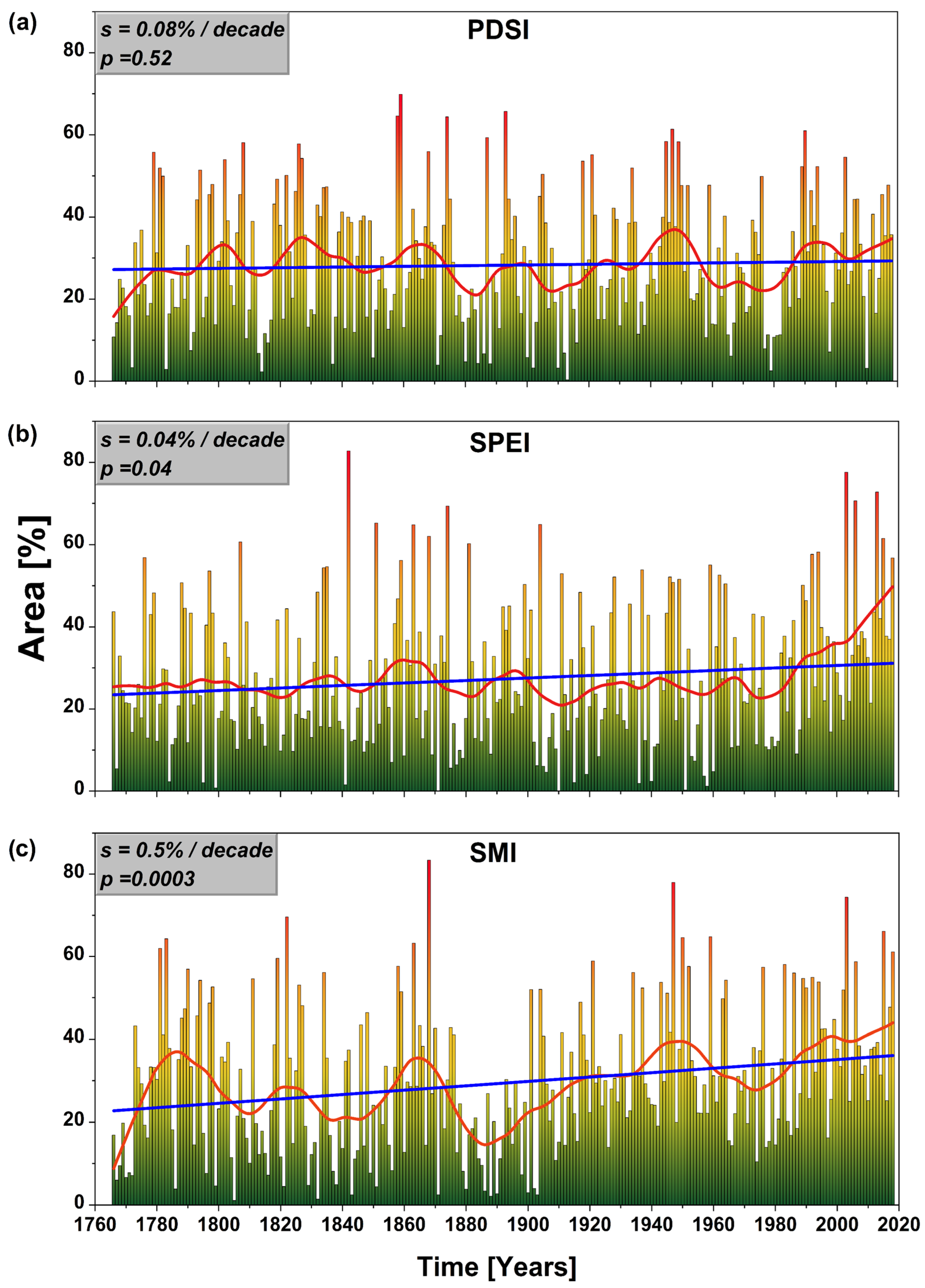 | PDSI | SPEI | SMI | PDSI | SPEI | SMI | PDSI | SPEI | SMI | PDSI | SPEI | SMI | |