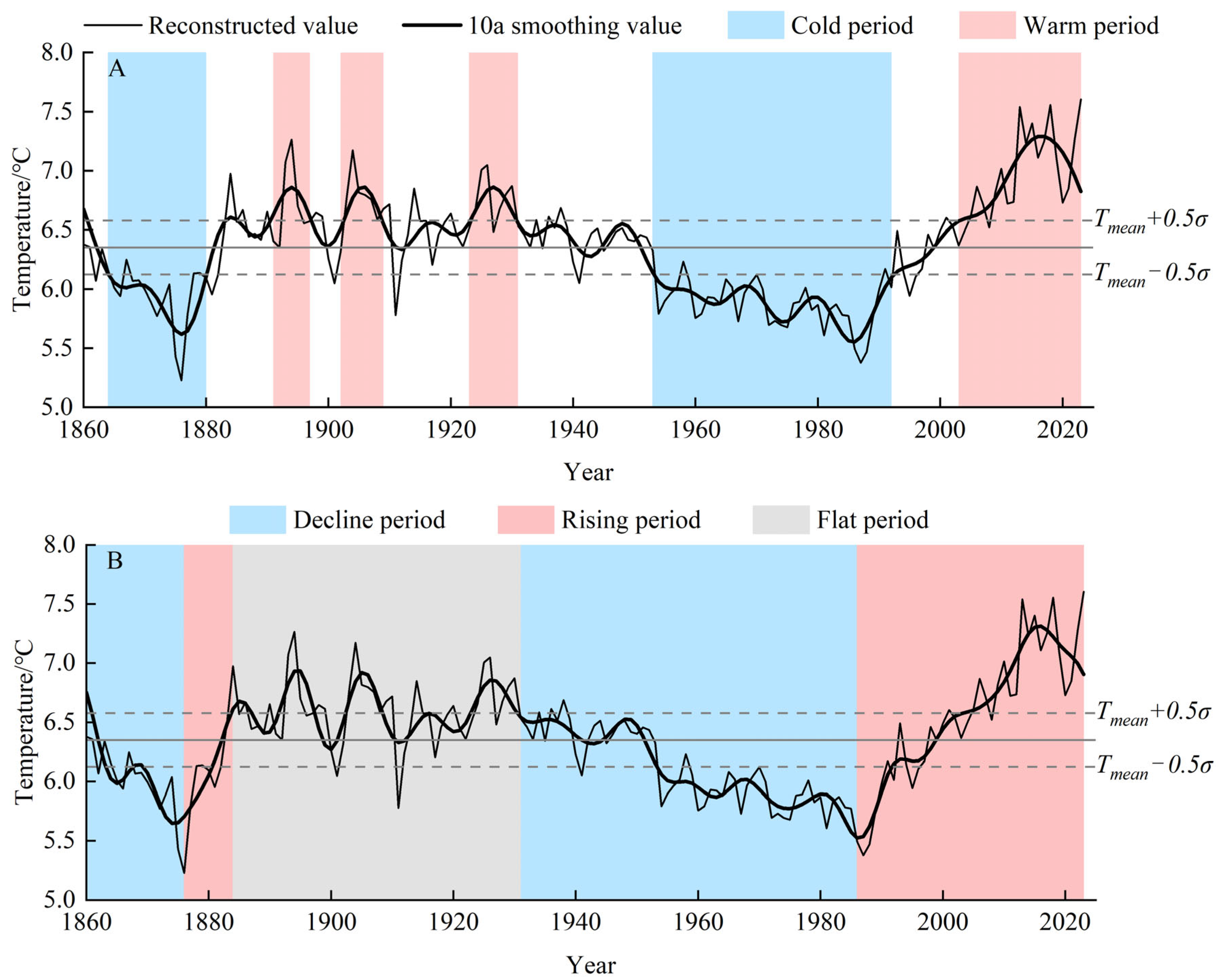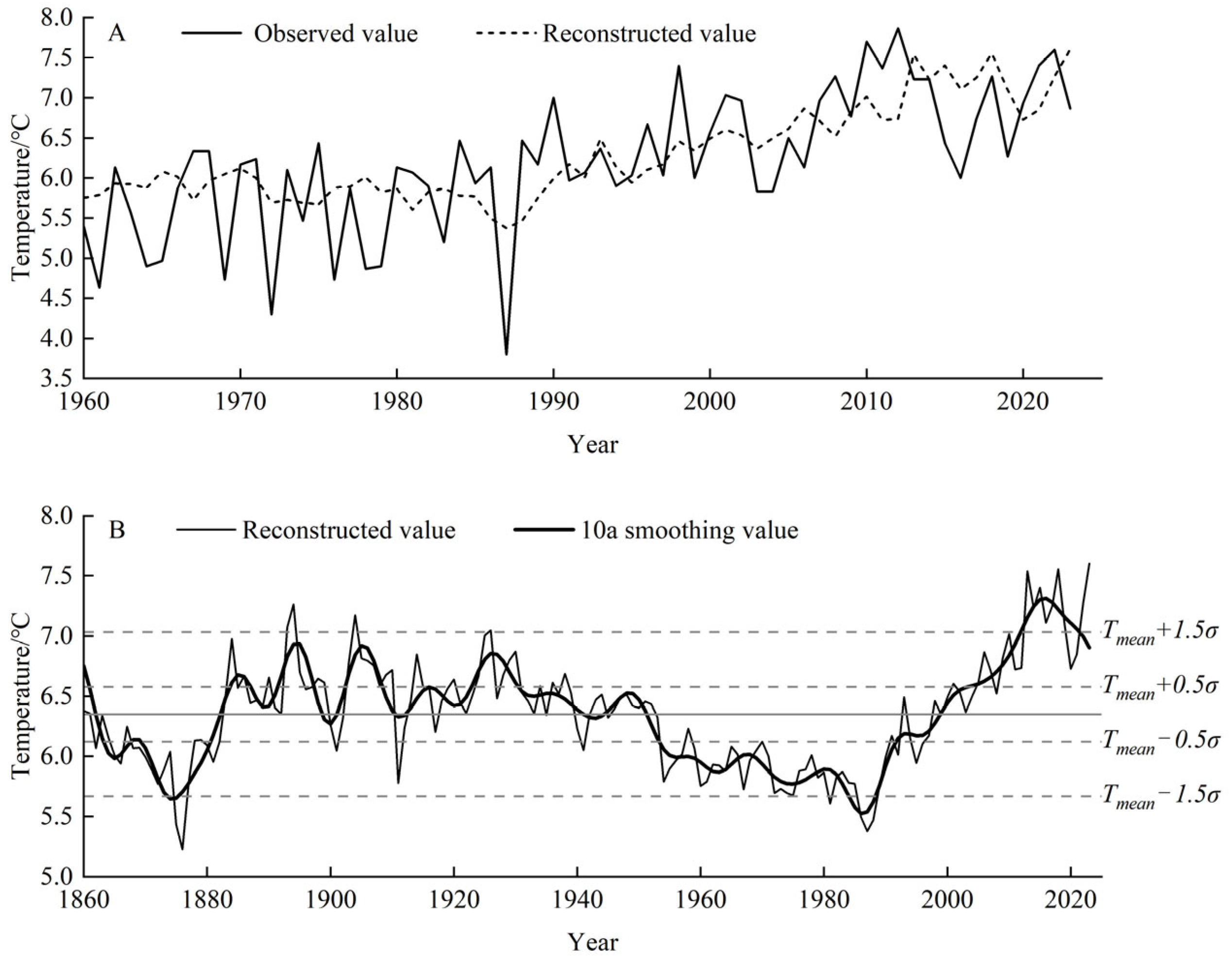 3.3. Reconstruction and Verification of the Minimum Temperature Sequence