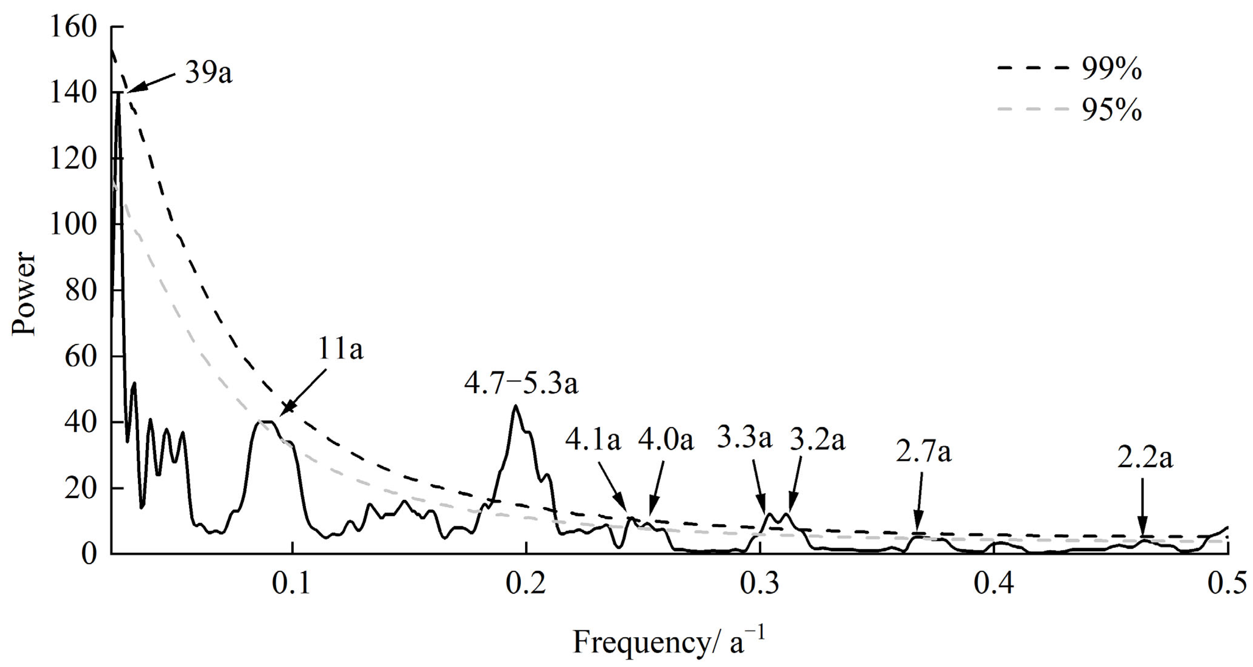 - Shi, J.; Jin, Z.; Liu, Q.; Fan, T.; Gao, Z. Sunspot cycles recorded in Eocene lacustrine fine-grained sedimentary rocks in the Bohai Bay Basin, eastern China. Glob. Planet. Change 2021, 205, 103614. [Google Scholar] [CrossRef]