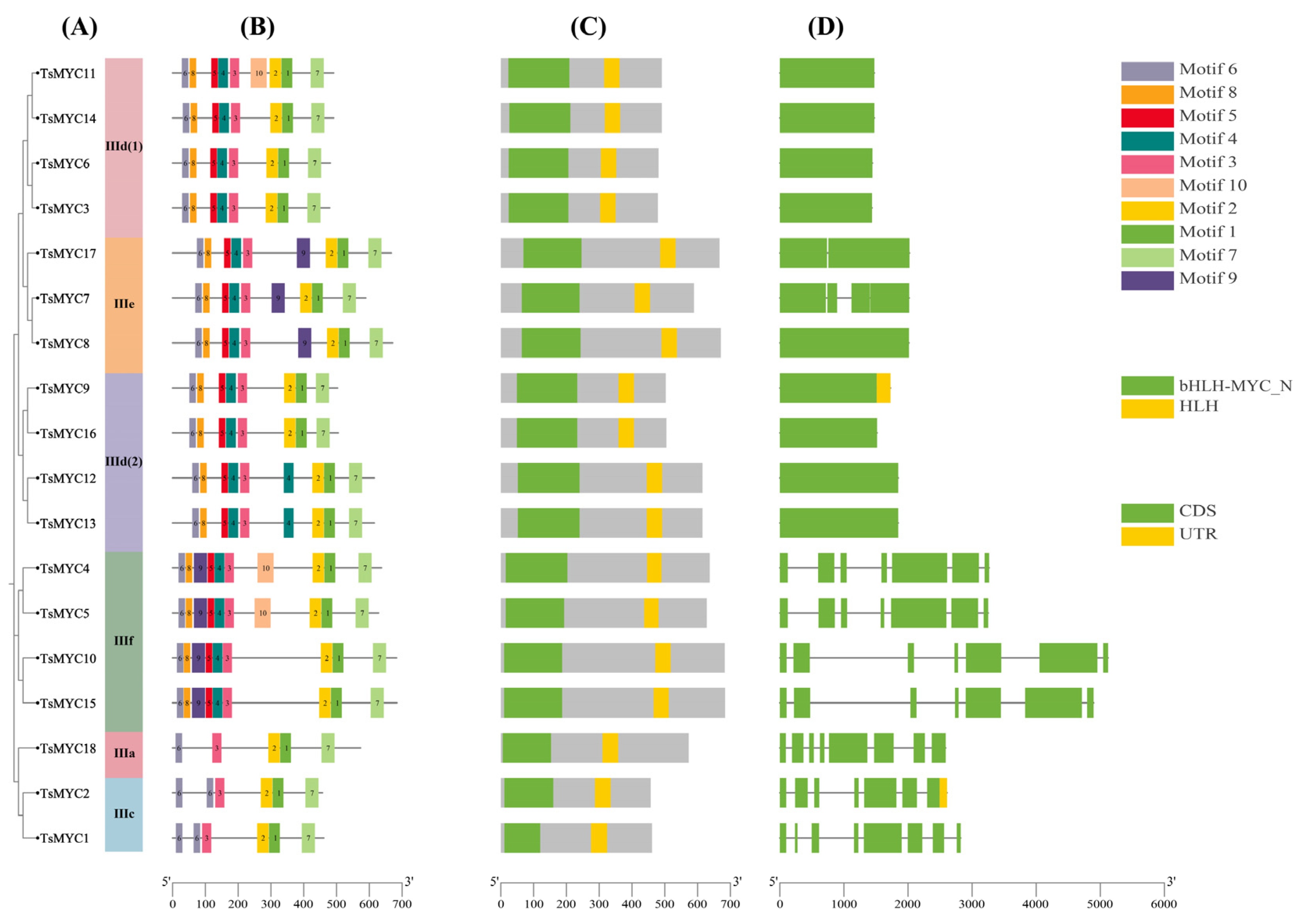 3.2. Phylogenetic and Classification Analysis of the TsMYC Gene Family