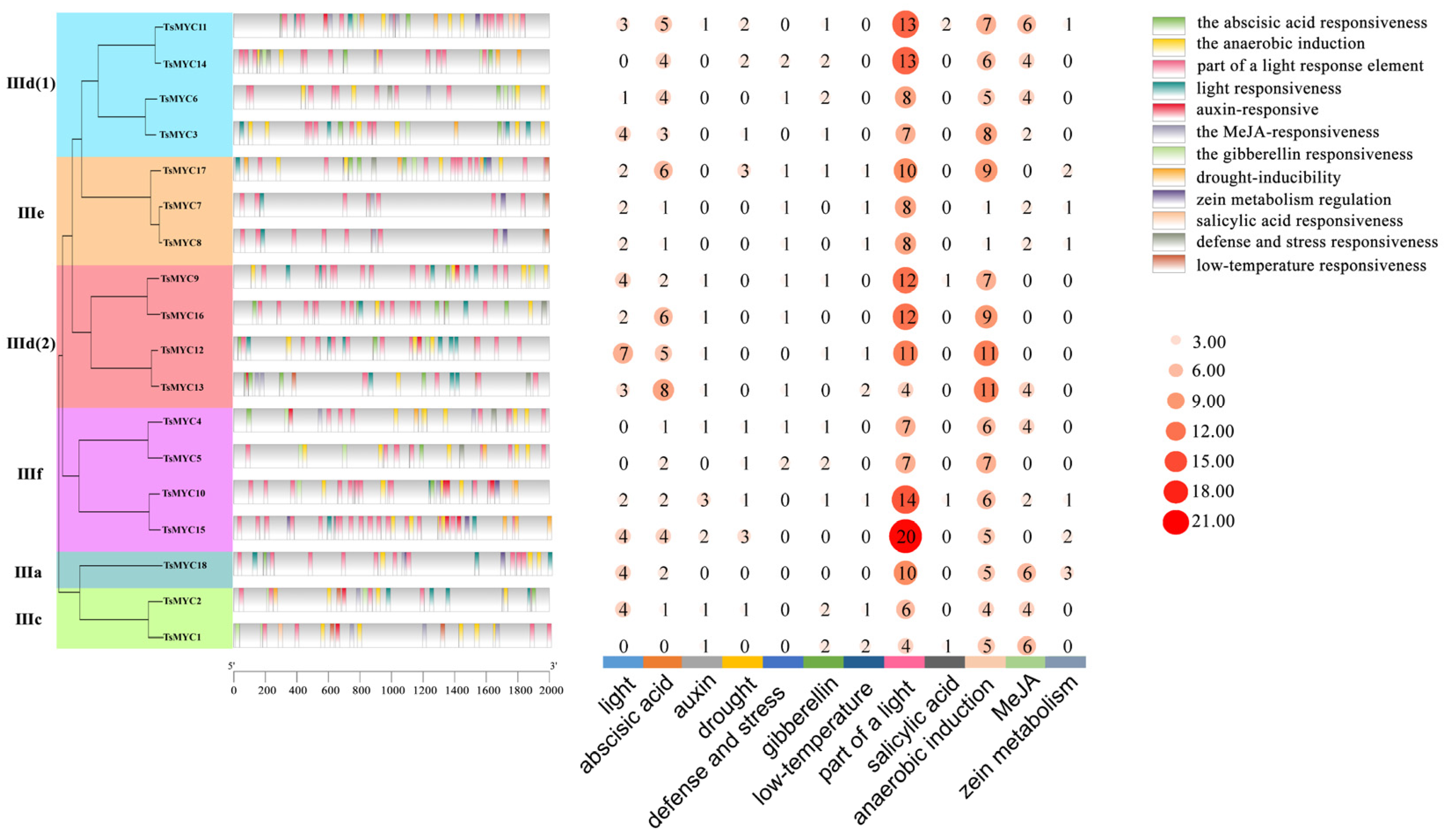 2.6. Cis-Regulatory Elements Analysis of Promoters Regions of TsMYC Genes