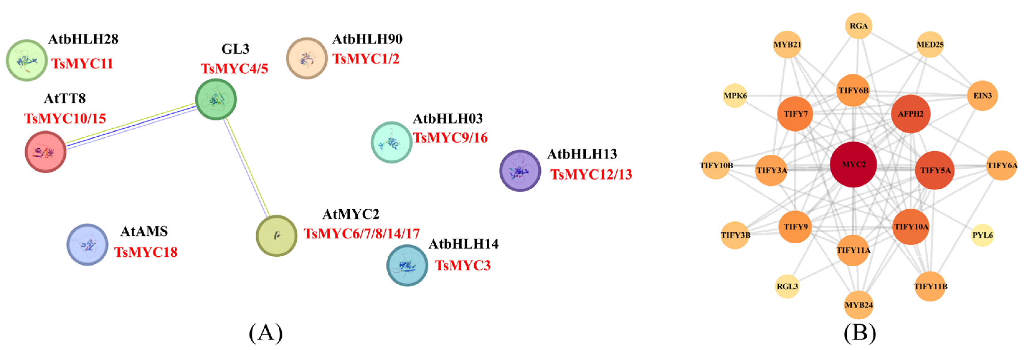 3.6. Interaction Network Prediction of the TsMYCs