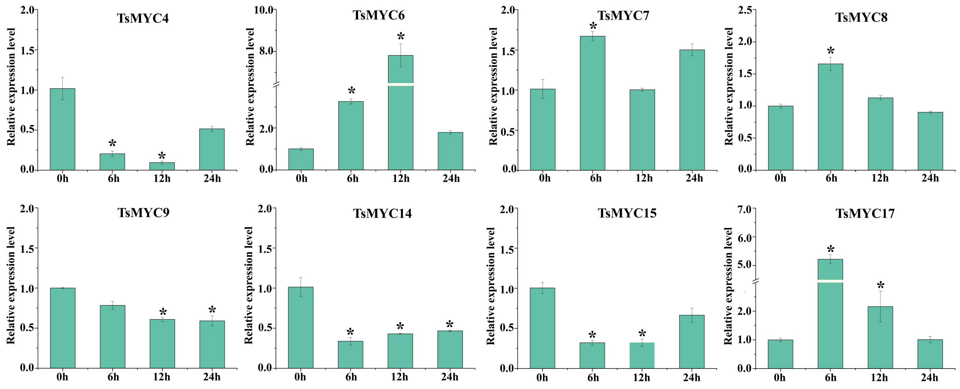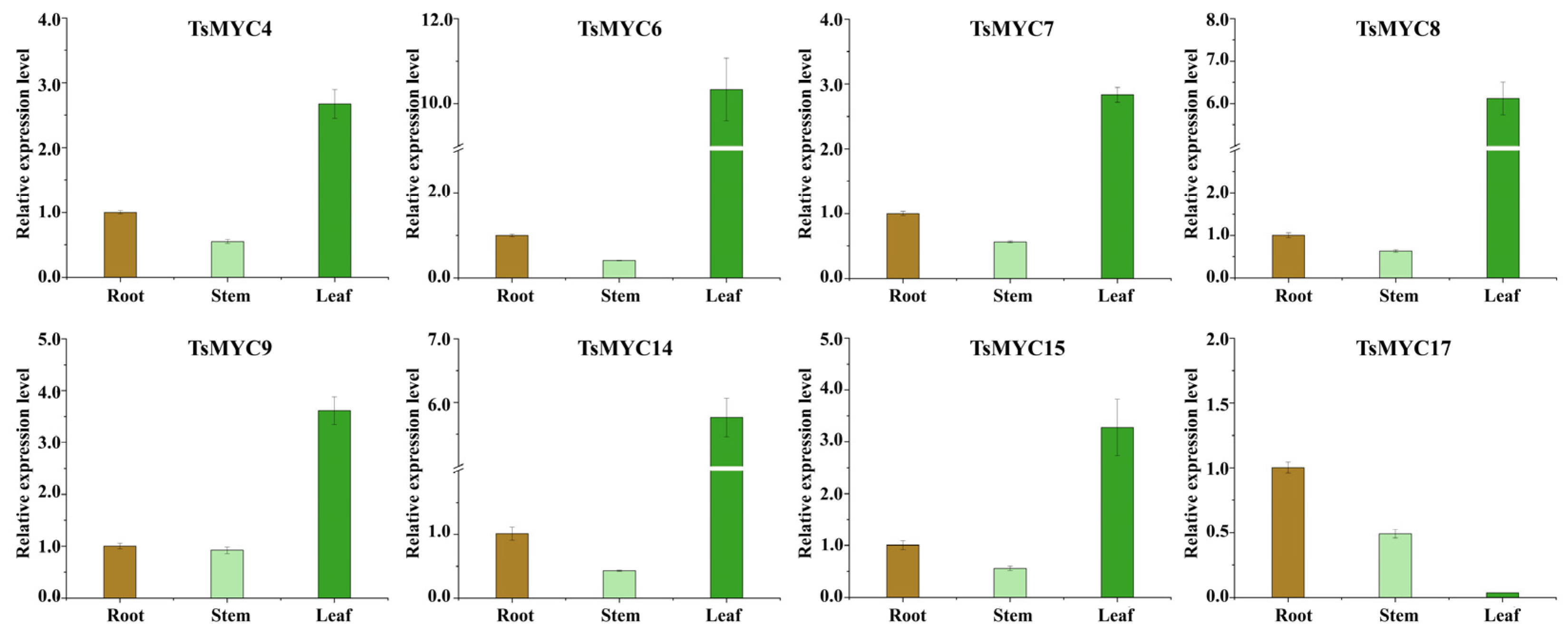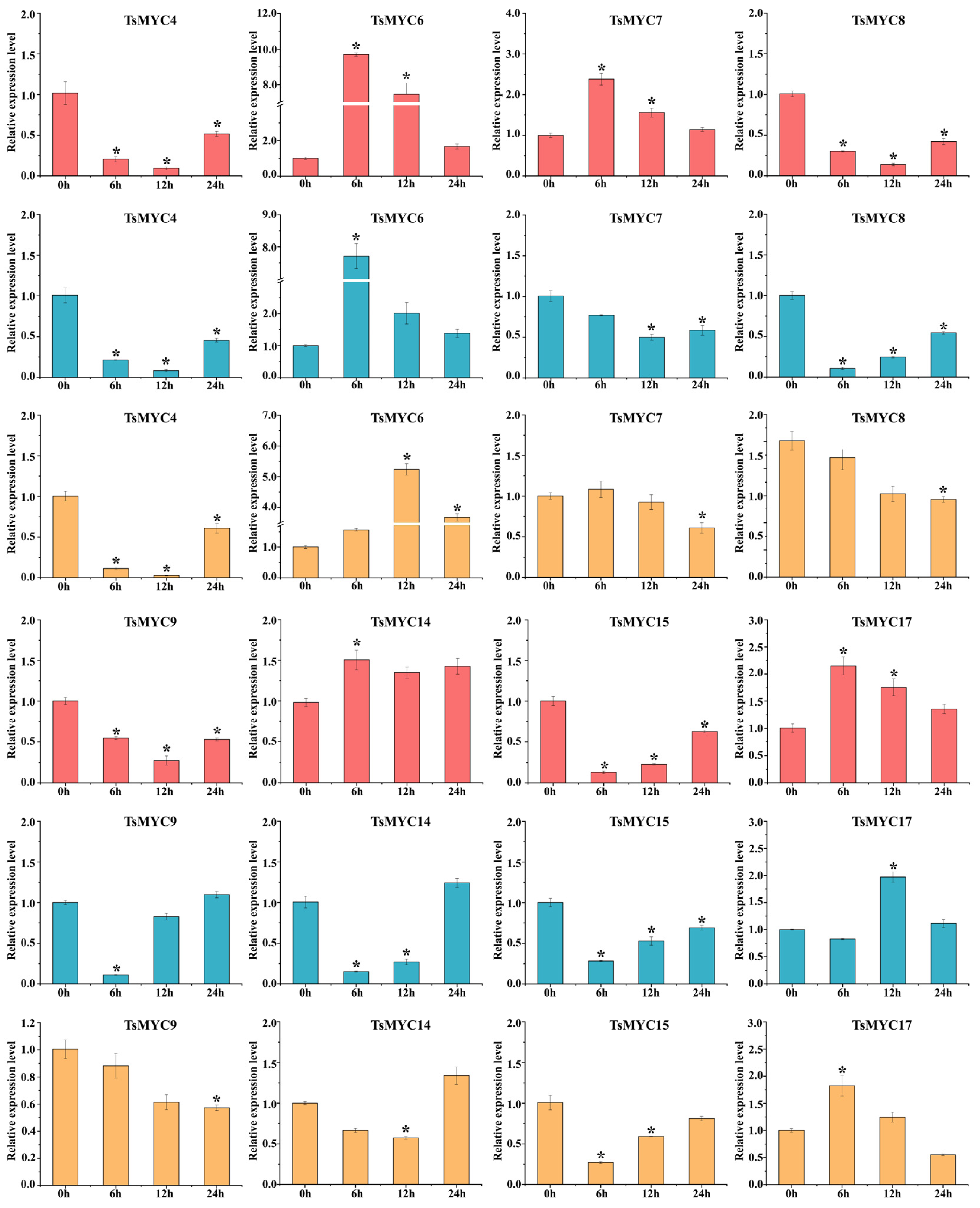 3.7. Expression Profiling of TsMYC Genes in Different Tissue