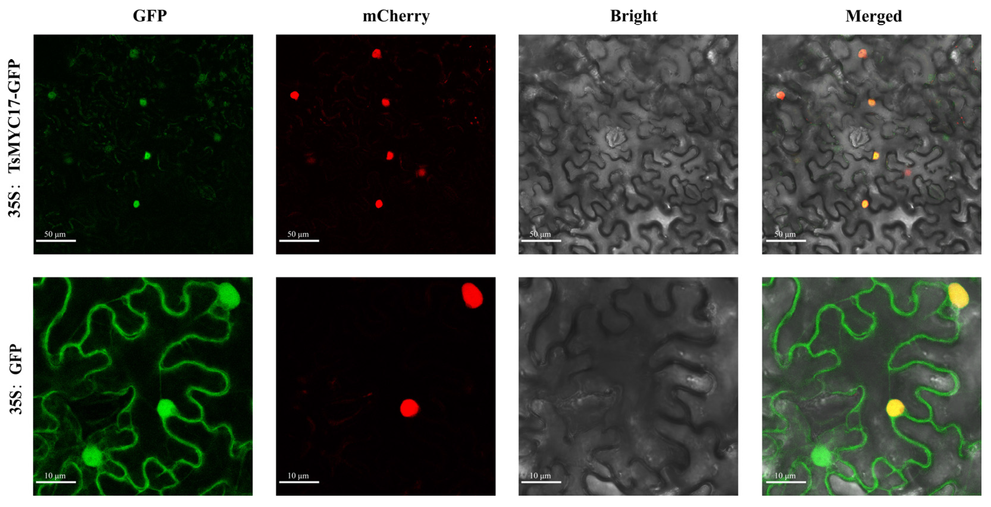 3.11. Subcellular Localization of TsMYC17