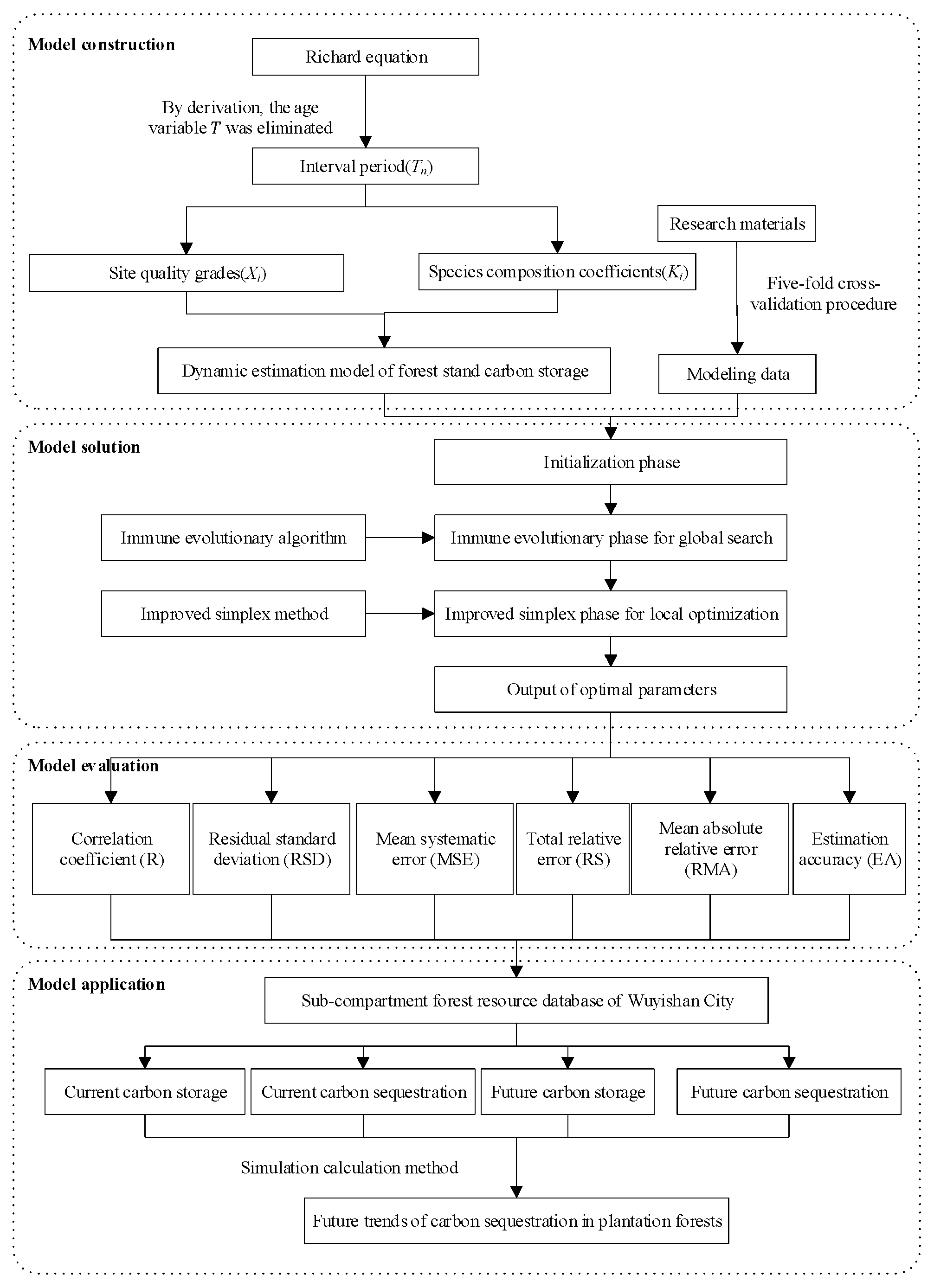 APA StyleHua, W., Hua, C., Zhang, S., Qiu, T., Jiang, X., Li, B., & Chen, B. (2025). A Dynamic Model for Estimating Forest Carbon Storage: Application in Wuyishan Forests. Forests, 16(12), 1758. https://doi.org/10.3390/f16121758