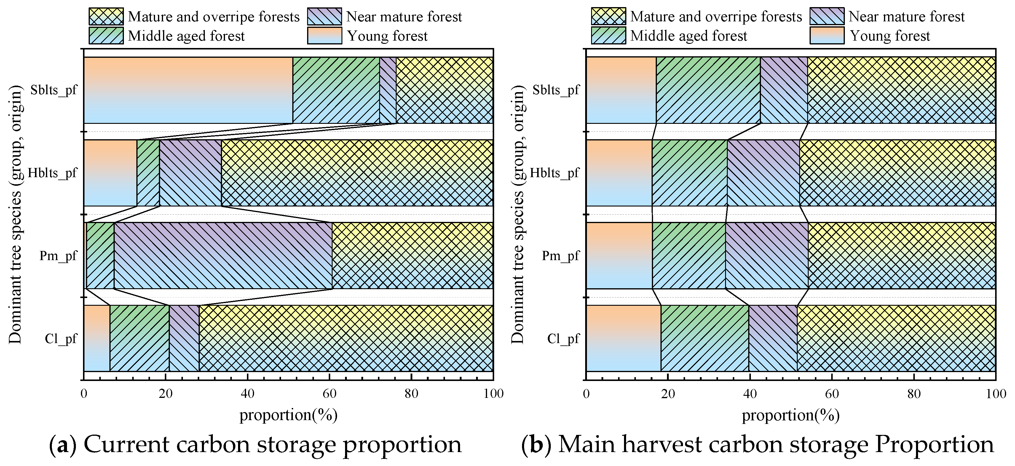 | Dominant tree species (group, origin) | b3 | b4 | c1 | c2 | c3 | c4 |