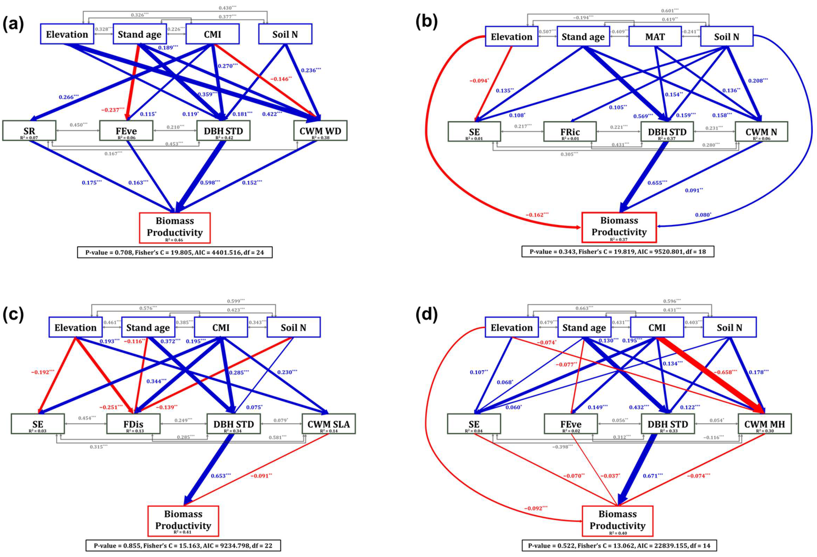 - Wang, L.Q.; Ali, A. Functional identity regulates aboveground biomass better than trait diversity along abiotic conditions in global forest metacommunities. Ecography 2022, 2022, e06110. [Google Scholar] [CrossRef]