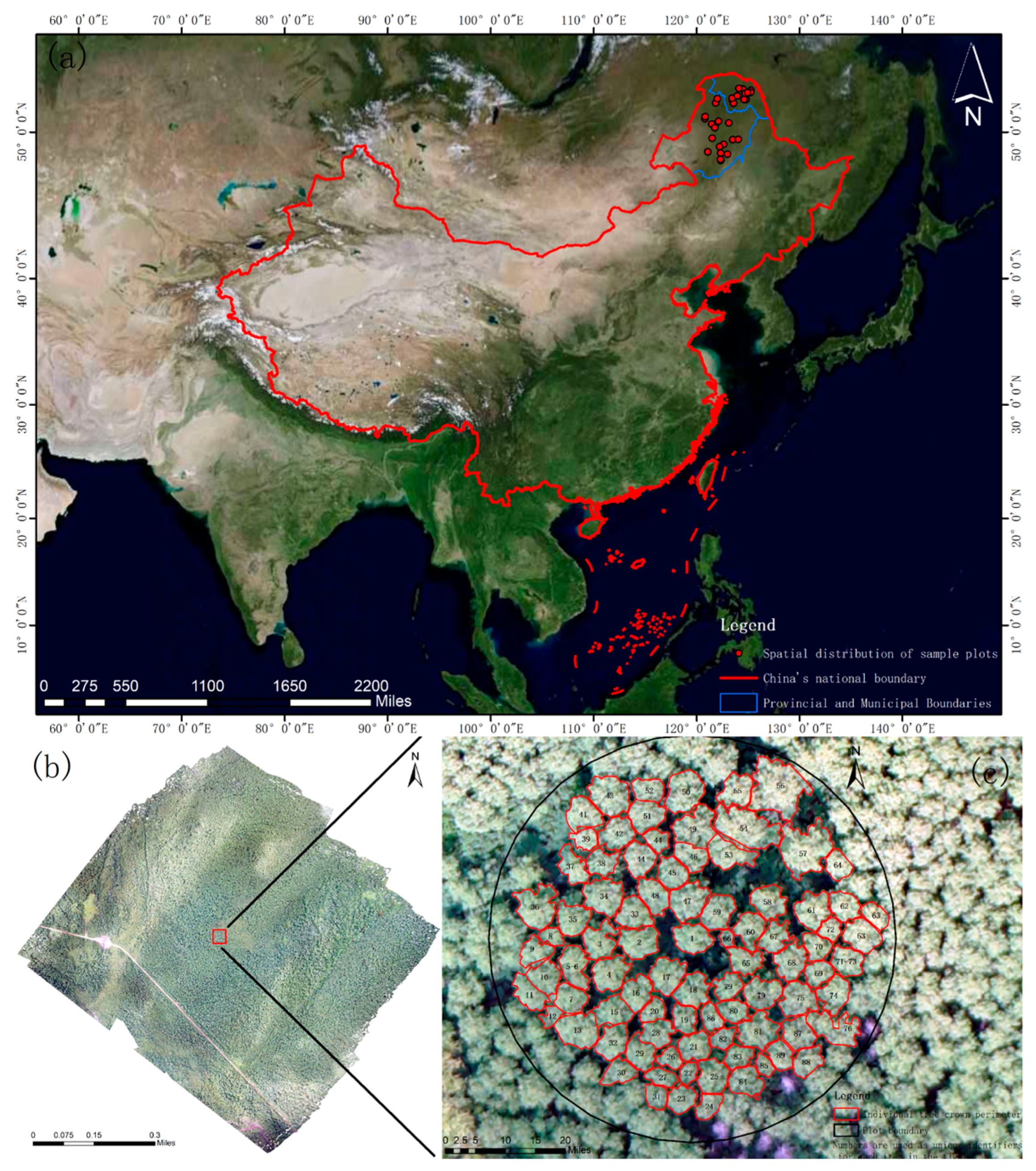 - Liu, J.L.; Zhang, Z.Y.; Ni, W.J.; Wang, Y.; Zhang, D.F. Individual Tree Recognition Algorithm Based on Unmanned Aerial Vehicle Image Matching Point Cloud. Remote Sens. Inf. 2017, 34, 93–101. [Google Scholar]